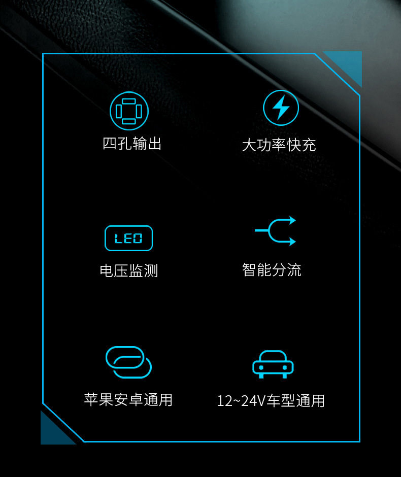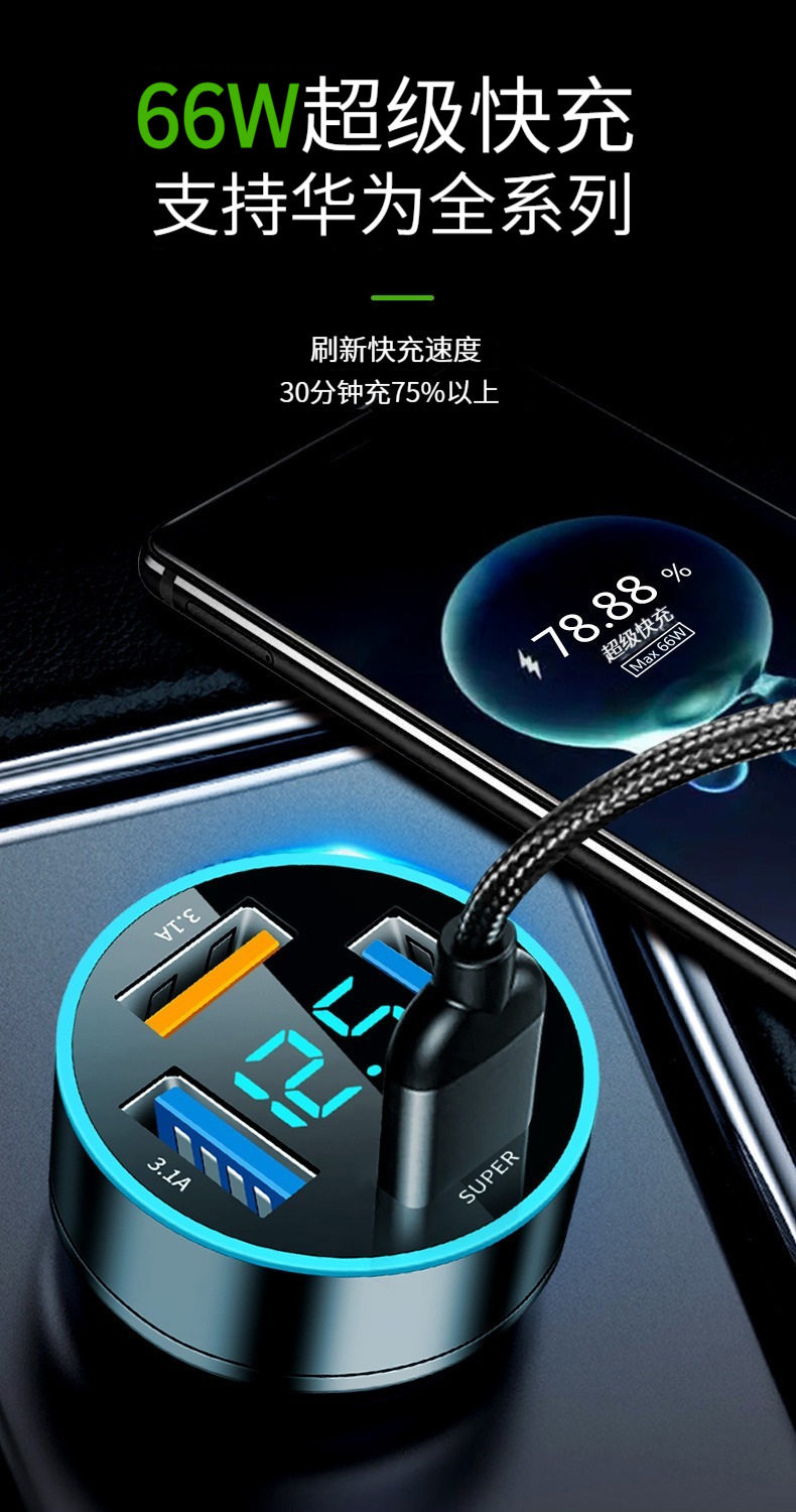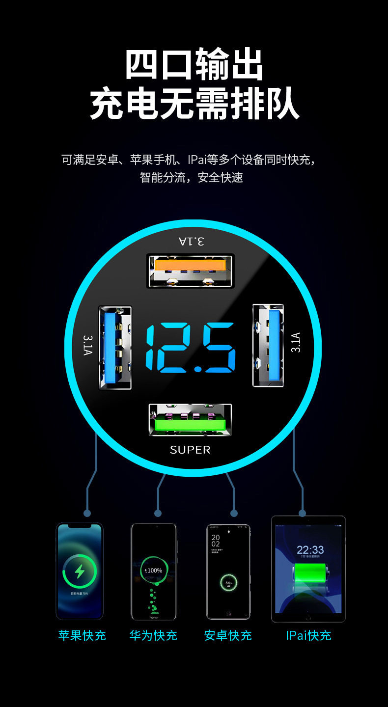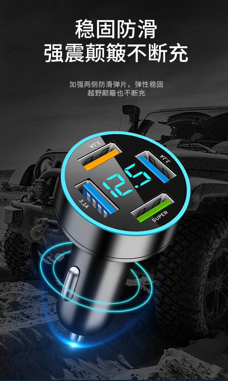 New aluminum ring PD + QC3.0 + 2.4A cross-border four-port car charger 4USB car charger factory direct sales