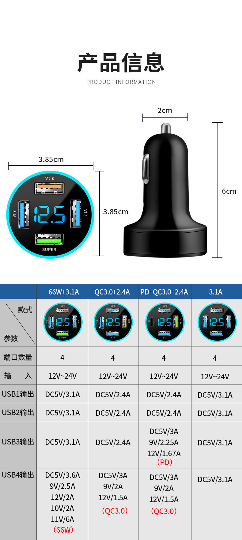 | Model | C178 four 4.8A(OPP bag),C178 four QC3.0 +2.4A(OPP bag),C178 four 66W +3.1A(OPP bag),C178 four-port PD + QC3.0 +2.4A(OPP bag),C178 four-port PD + QC3.0 + 2.4A + TYPE C(OPP bag) |