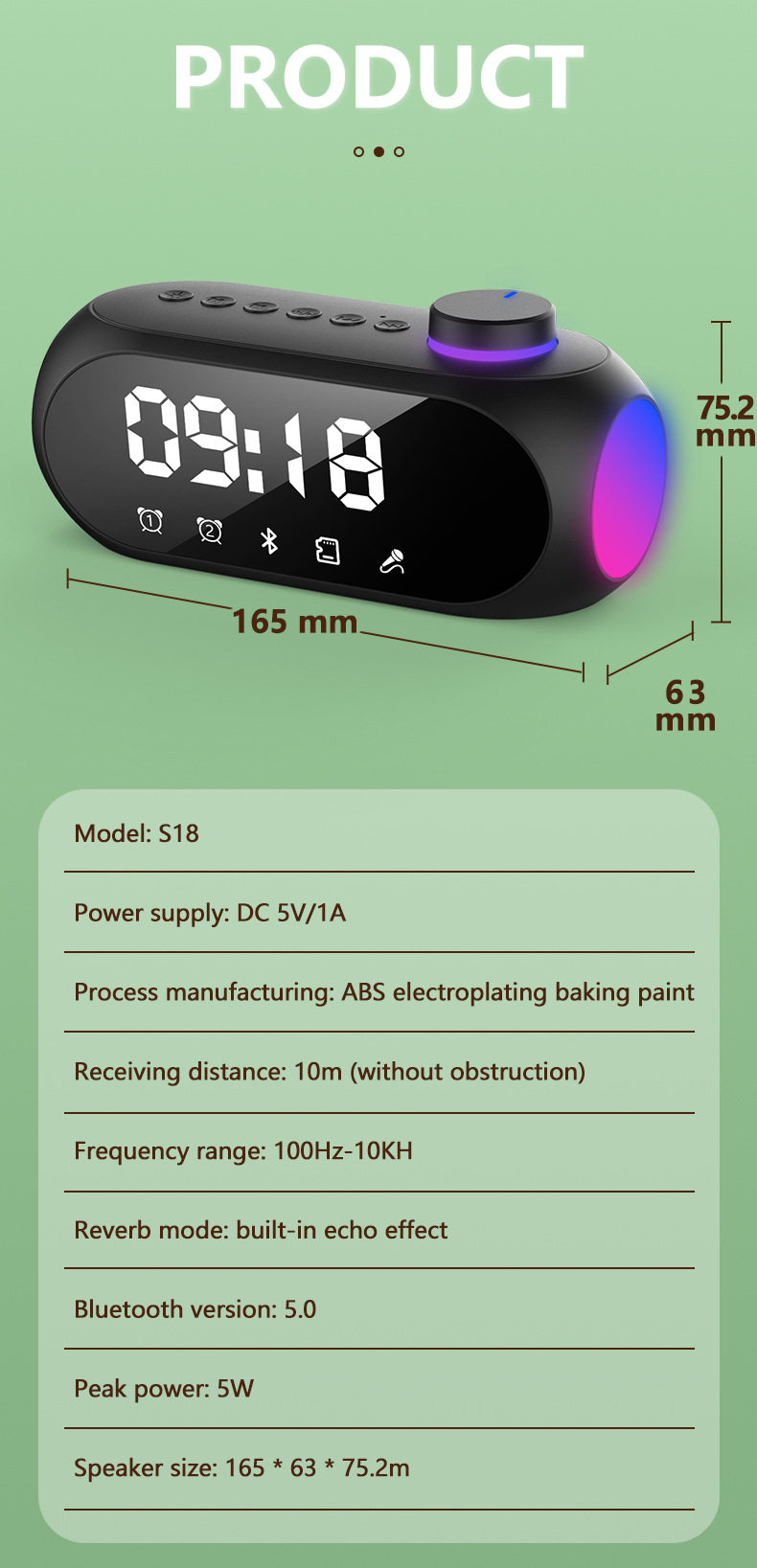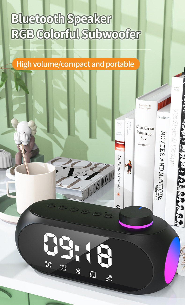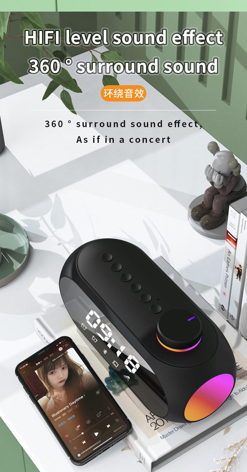New S18 Bluetooth speaker RGB alarm clock speaker heavy subwoofer portable mini clock home desktop audio