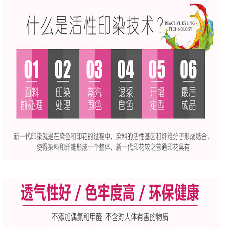 | Printing and dyeing process | Reactive printing and dyeing |