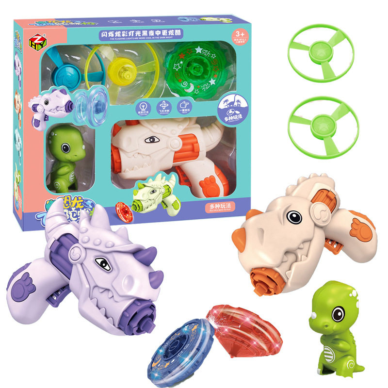 Children's Dinosaur Gyro UFO Rotary Launcher Gyro Gun Toy Set Boy Frisbee Bamboo Dragonfly Toy Gift