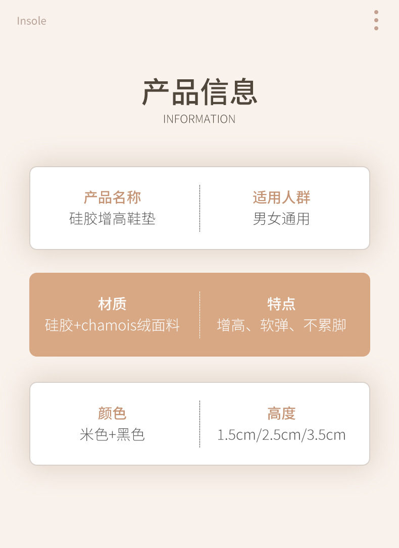 | Style | Silicone heightening half pad |