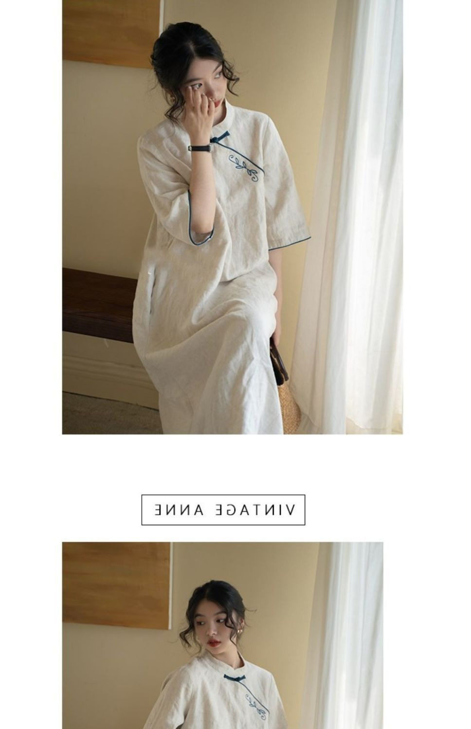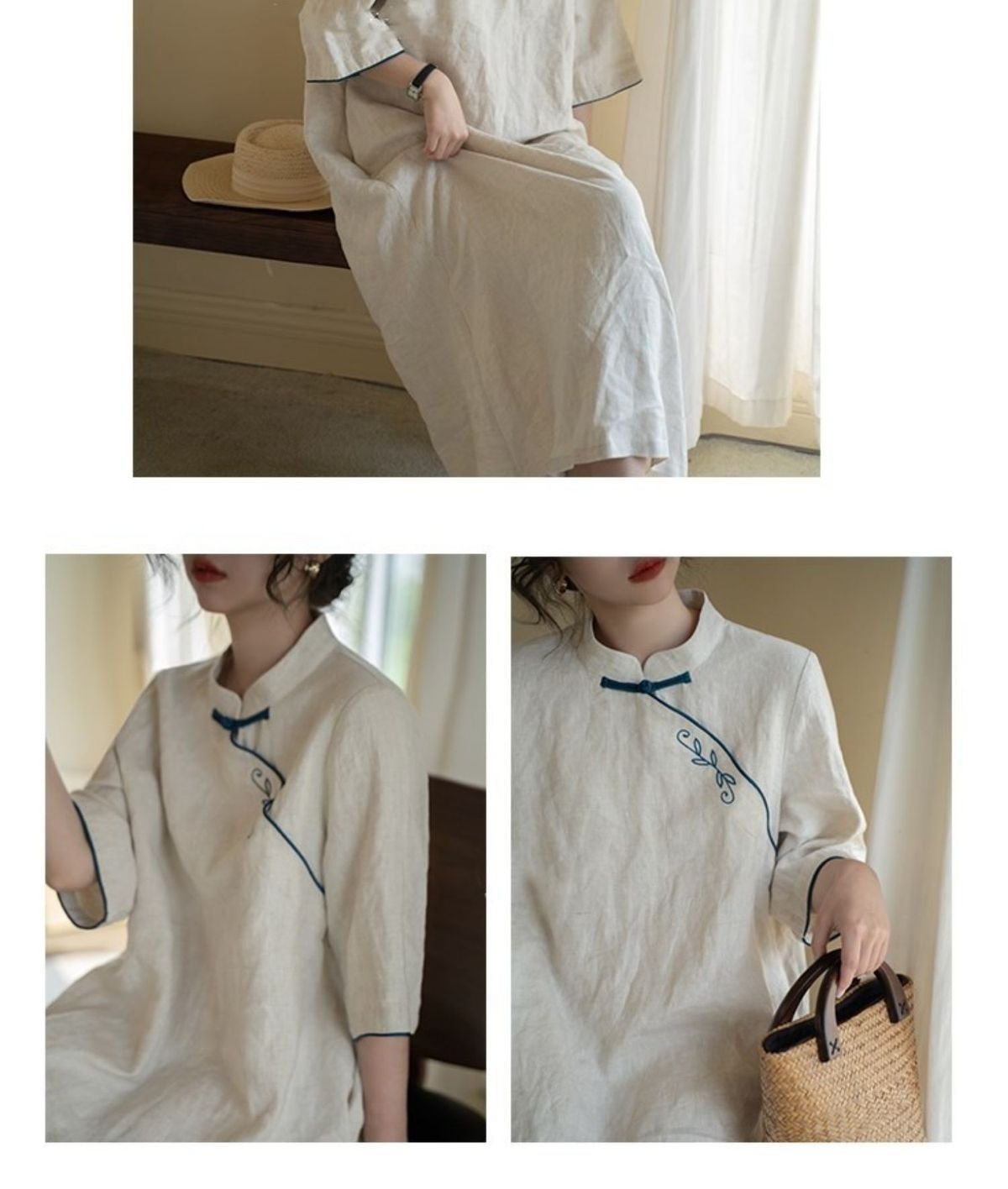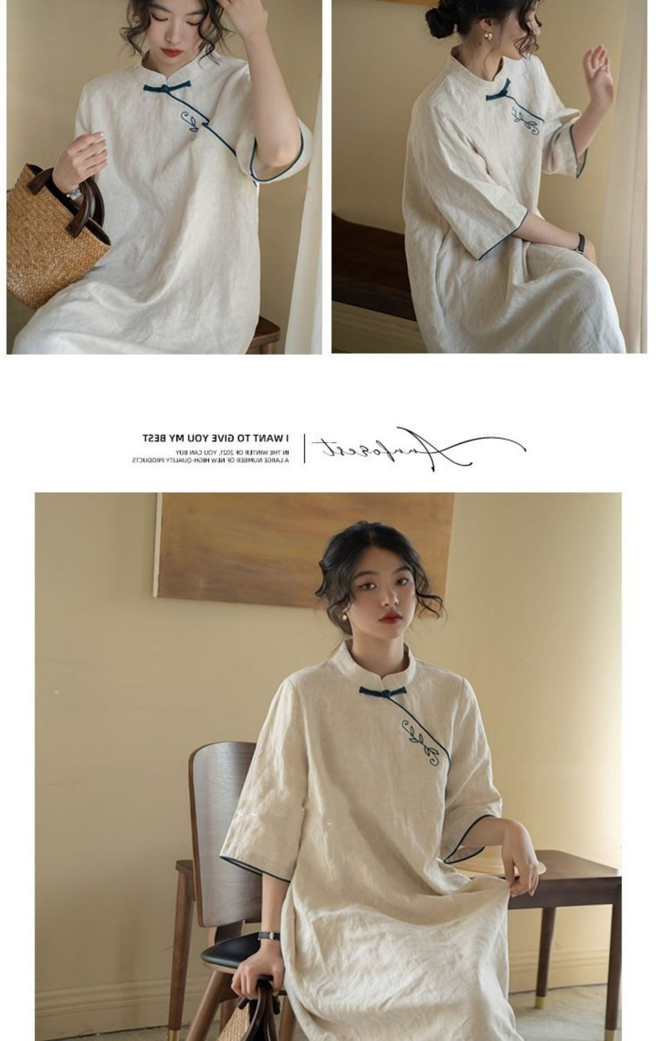Summer Vintage Embroidered New Chinese Style Improved Cheongsam dress Small Vertical Neck Pan Mouth Loose Classical Elegant Midi Dress