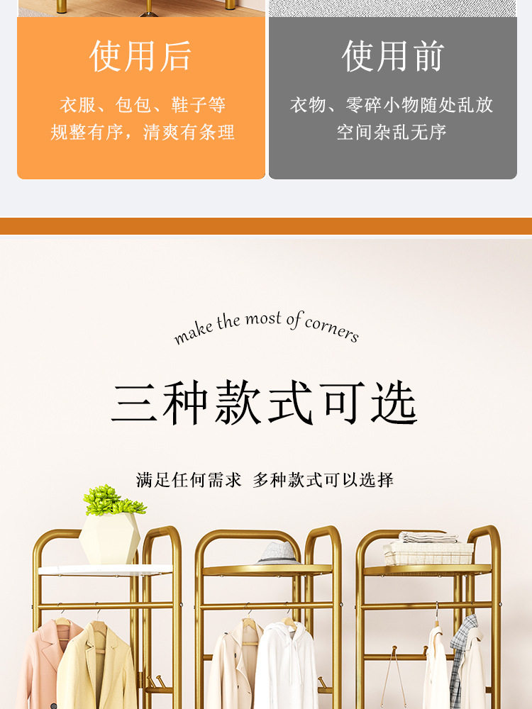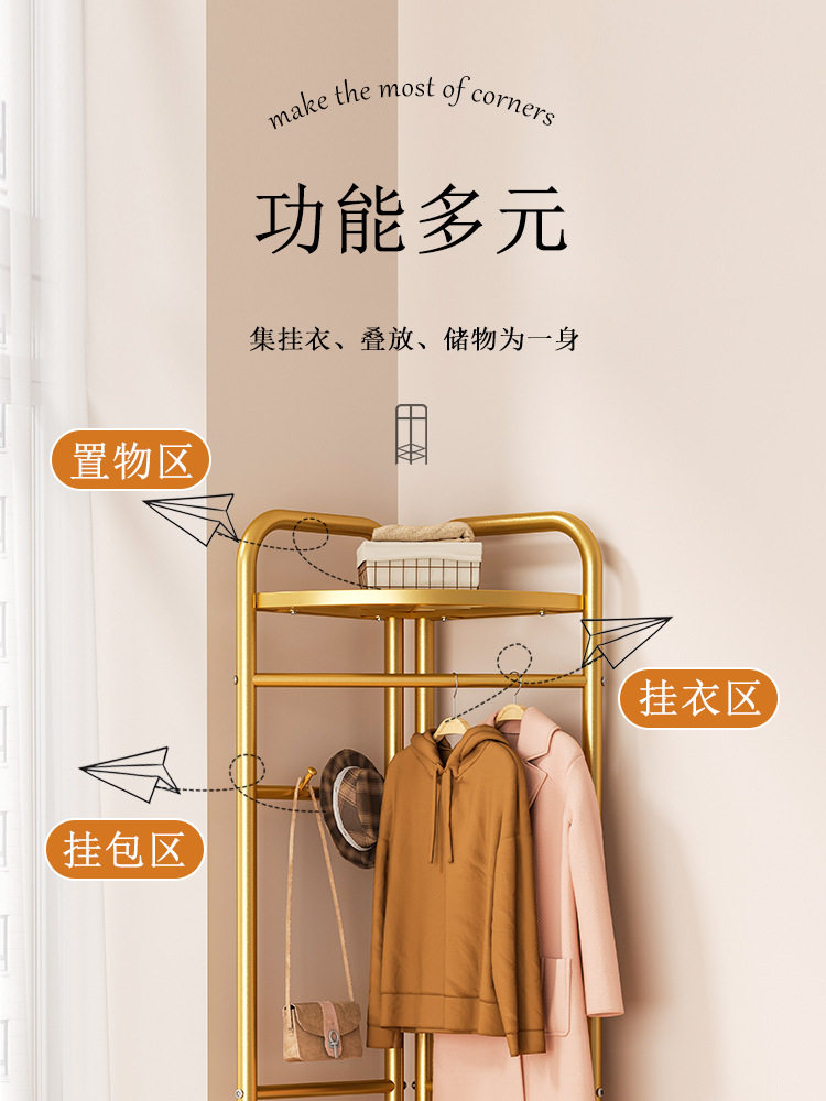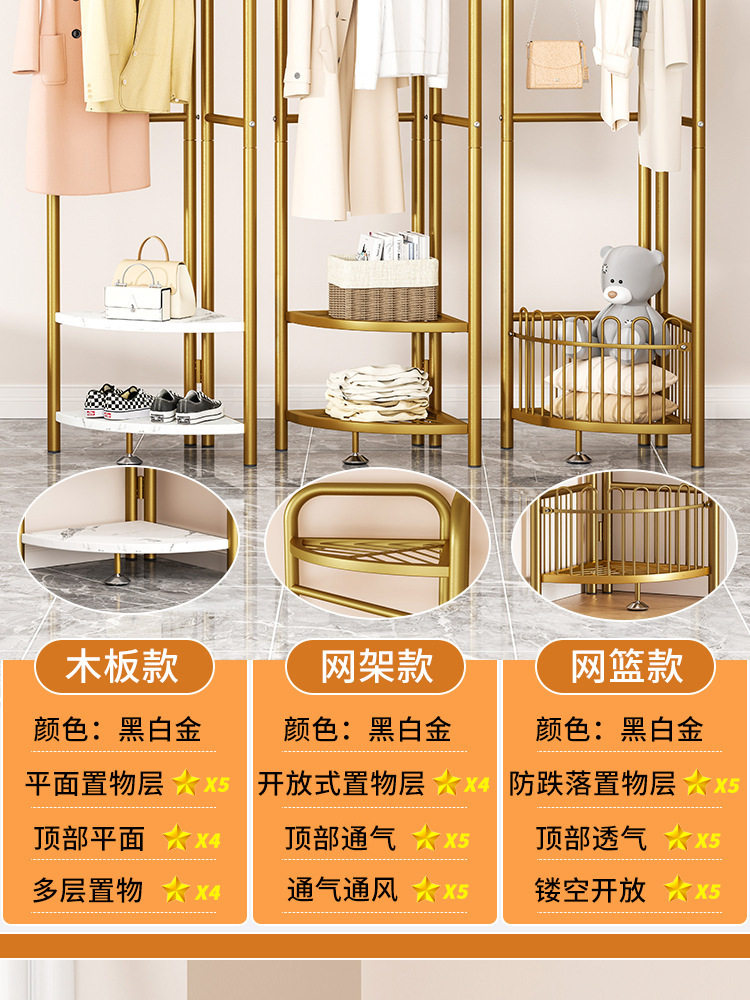 Bedroom Clothes Hanger Floor-Standing Internet Celebrity Household Foldableing Coat Rack Accessible Luxury Rod Type Creative Room Corner Clothes Rack
