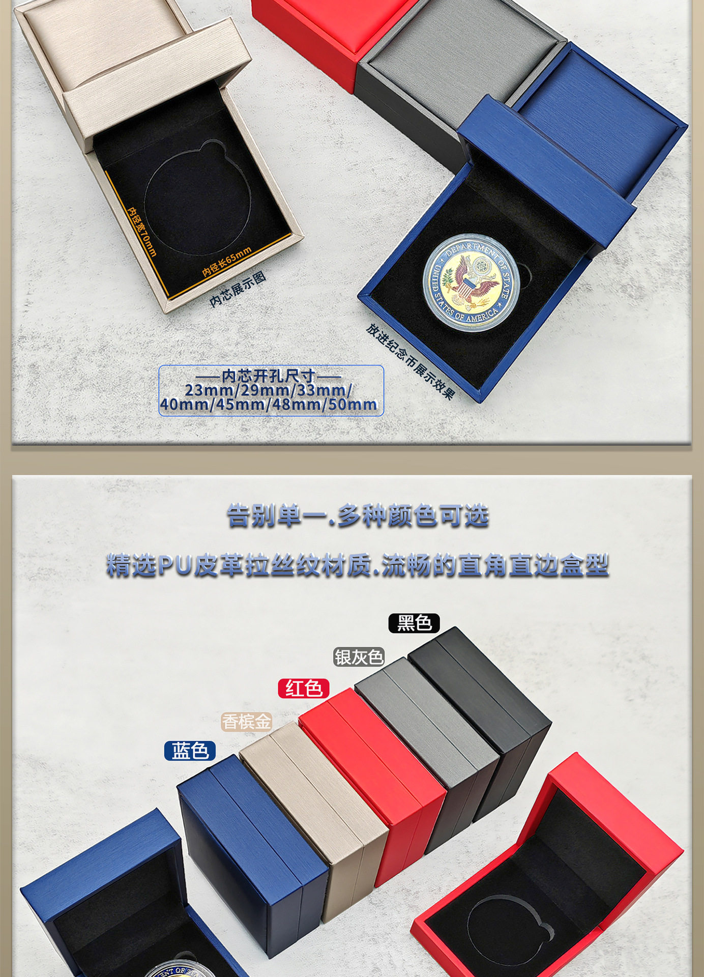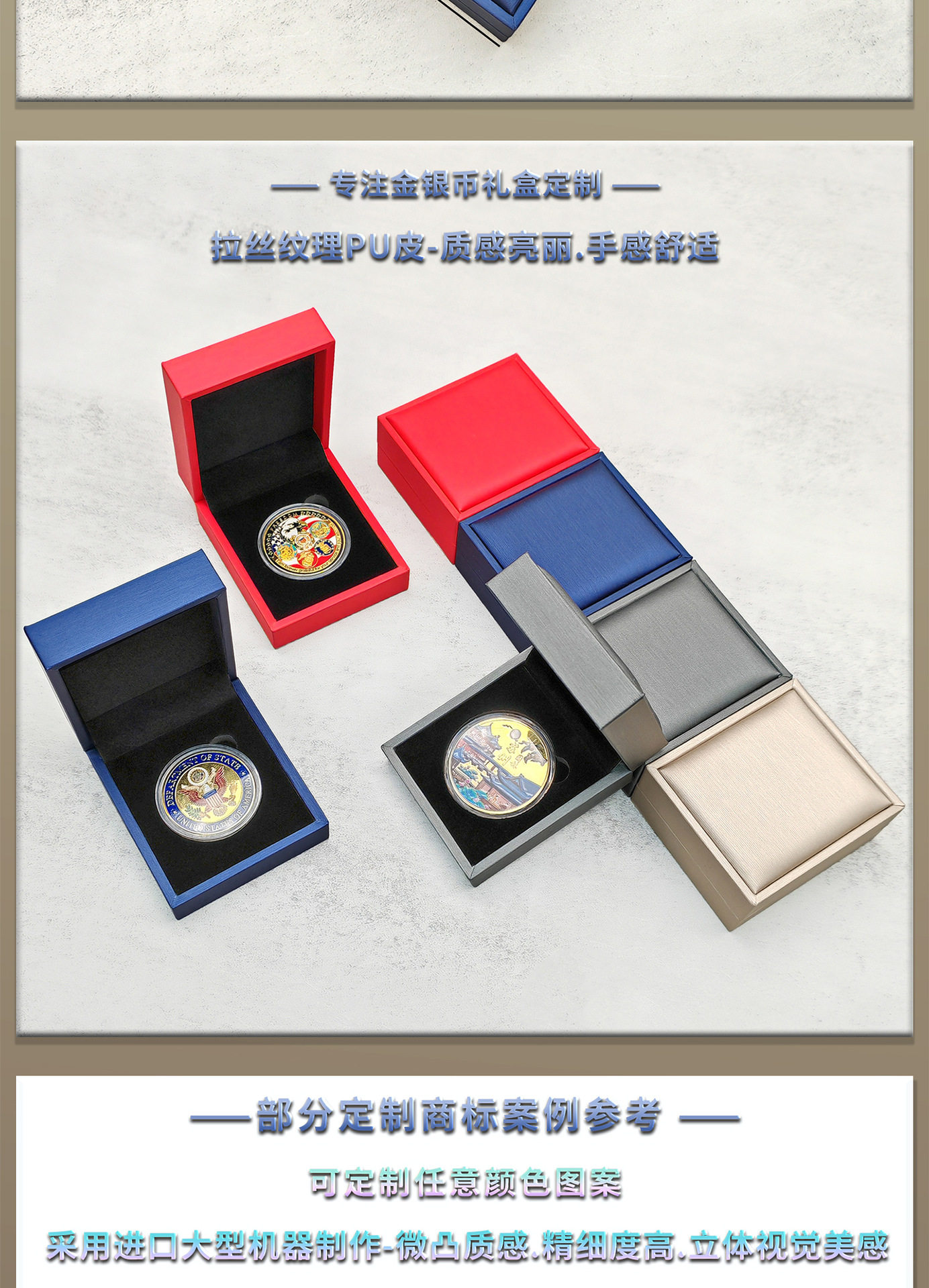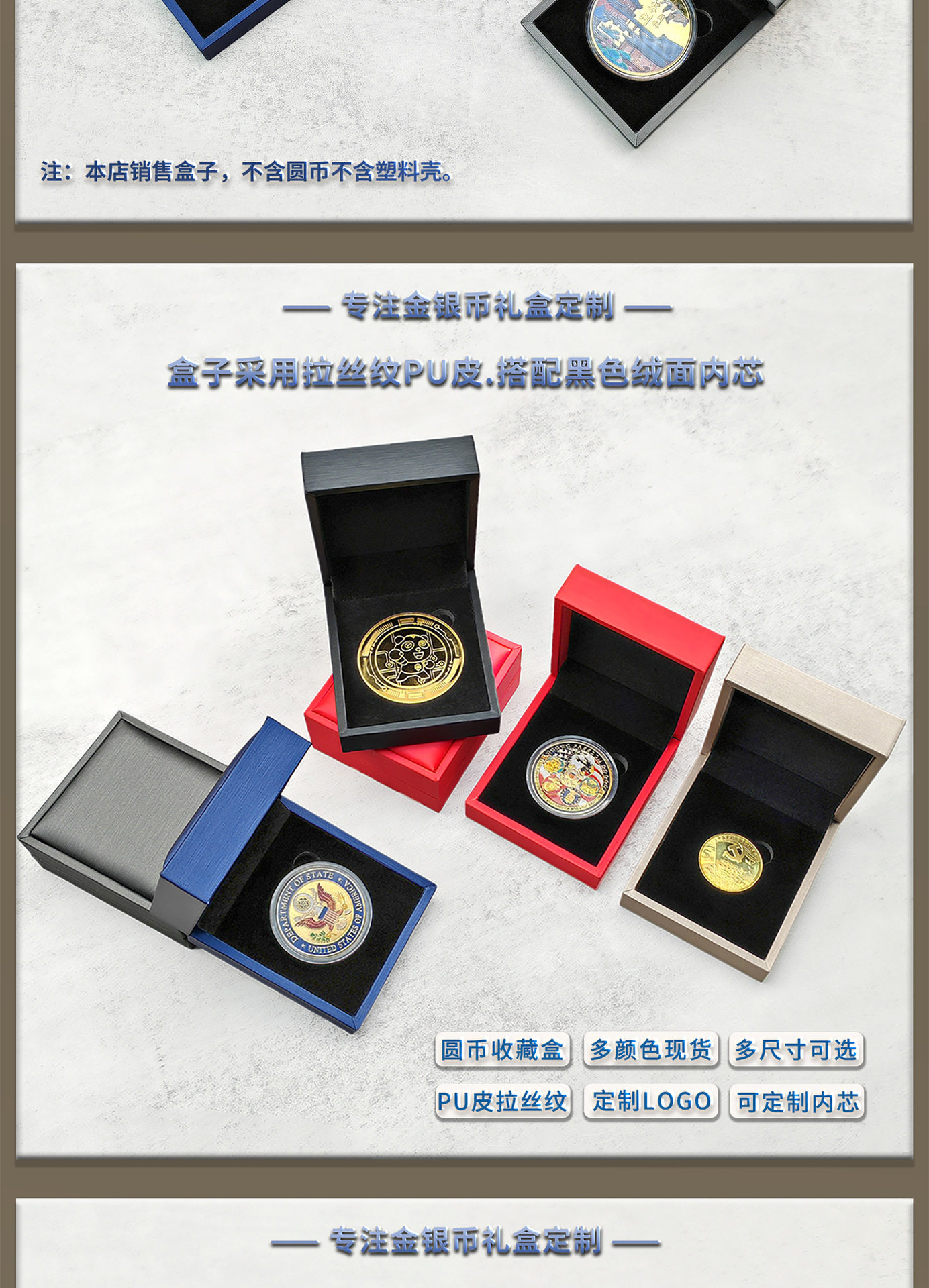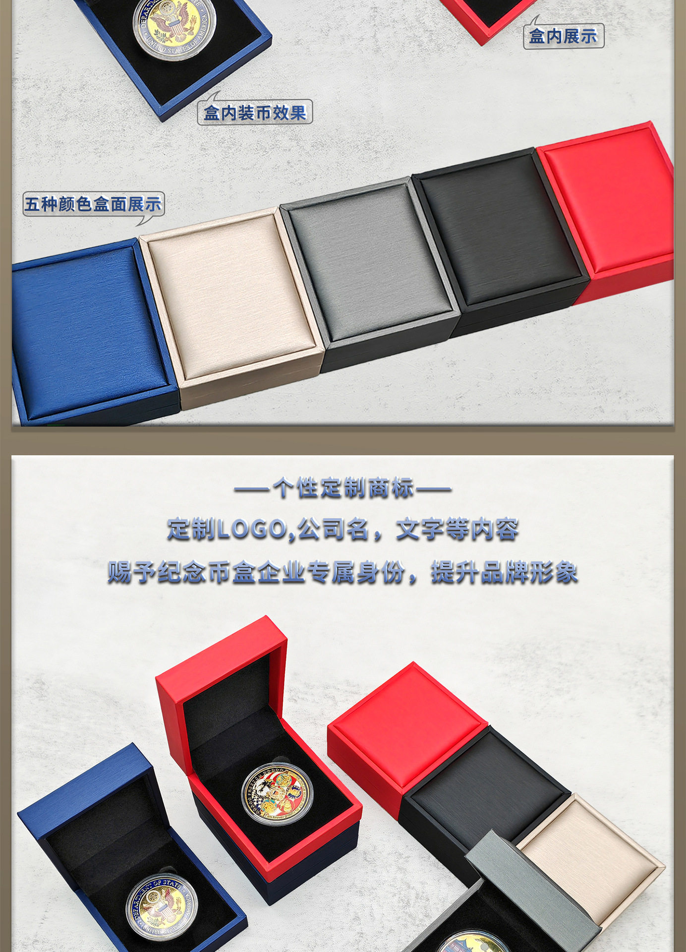 High-End Business Commemorative Gold Coin Collection Box Pu Leather Silver Coin Packaging Box Badge Round Coin Gift Box Can Be Printed with Logo
