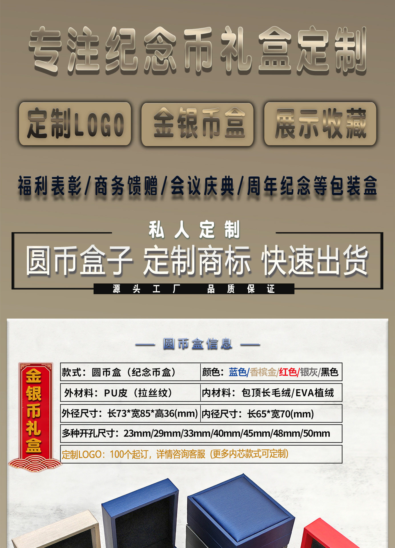 | Purpose | Commemorative coin box/gold and silver coin box/badge box/brooch box |