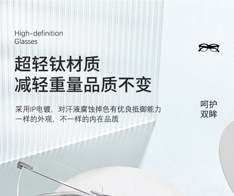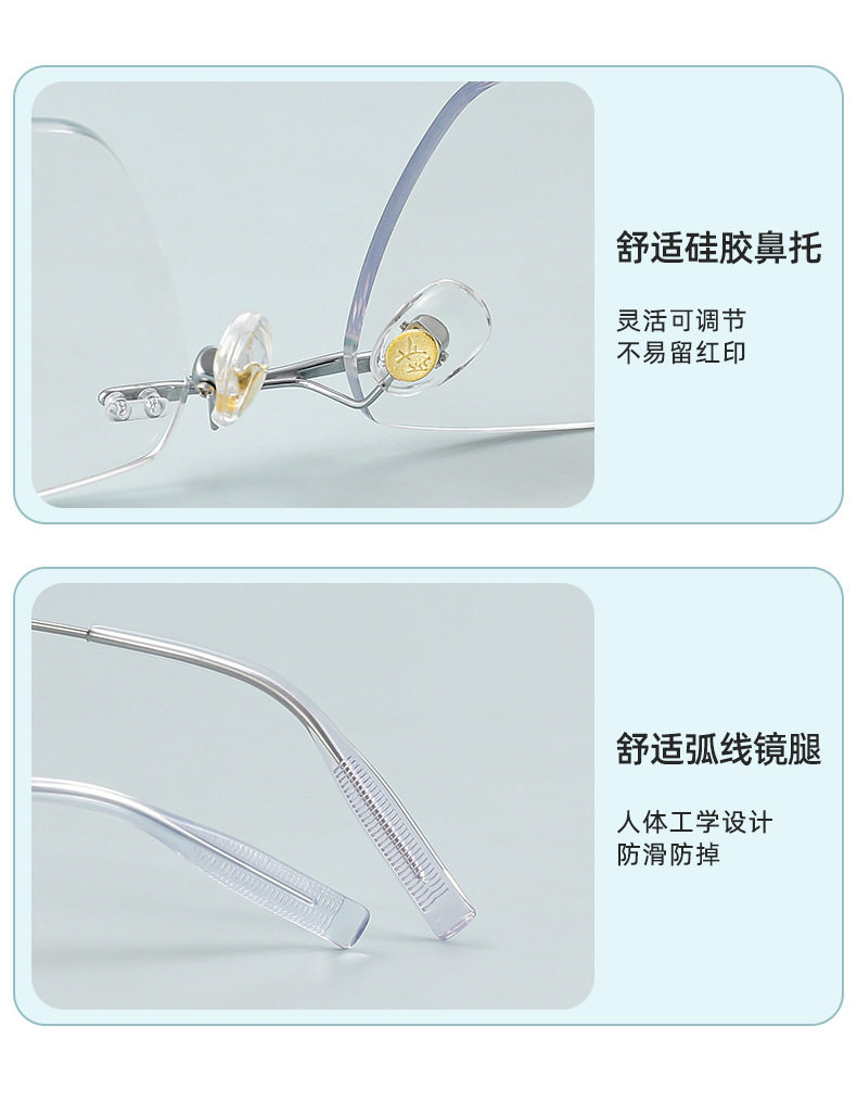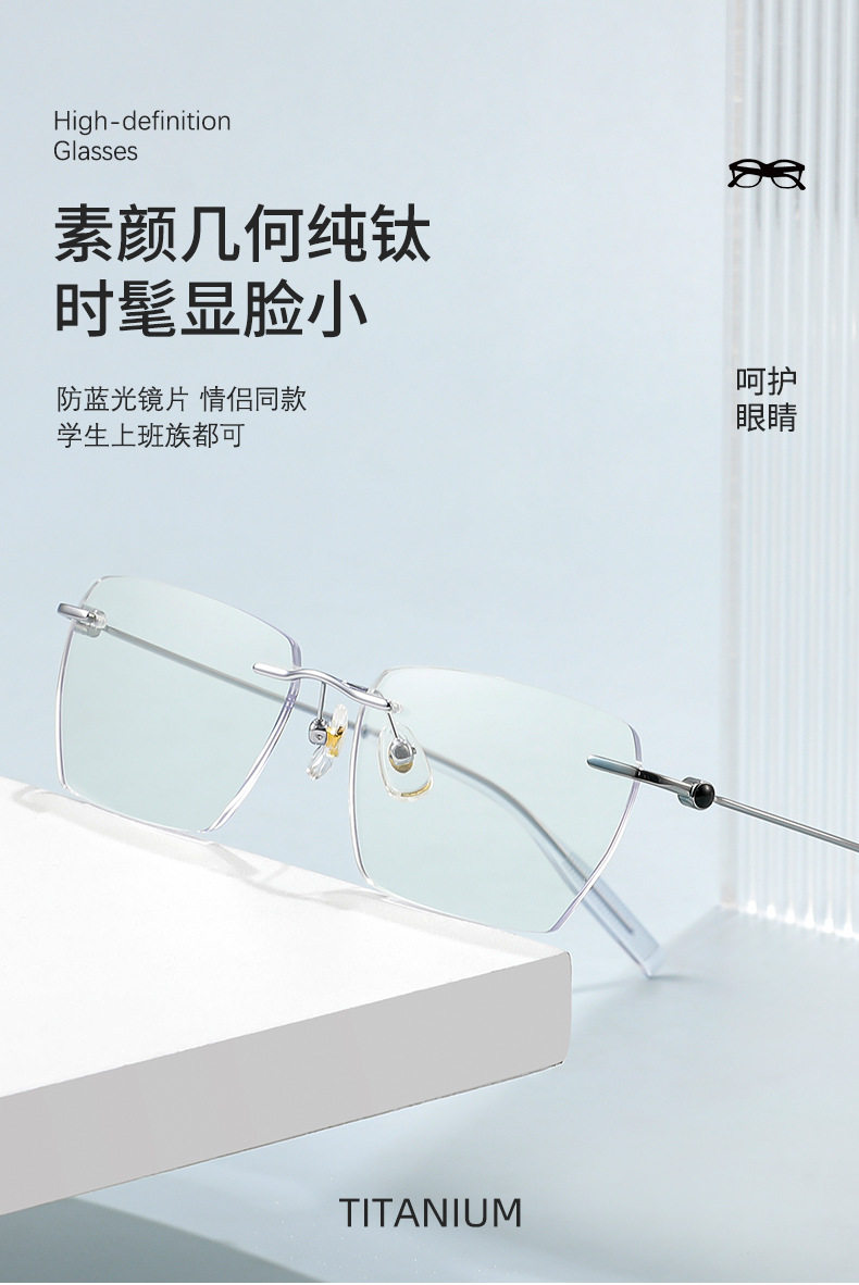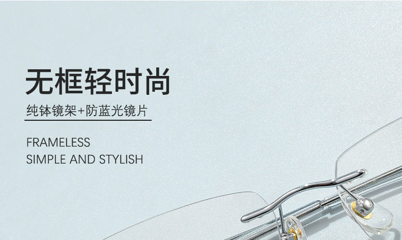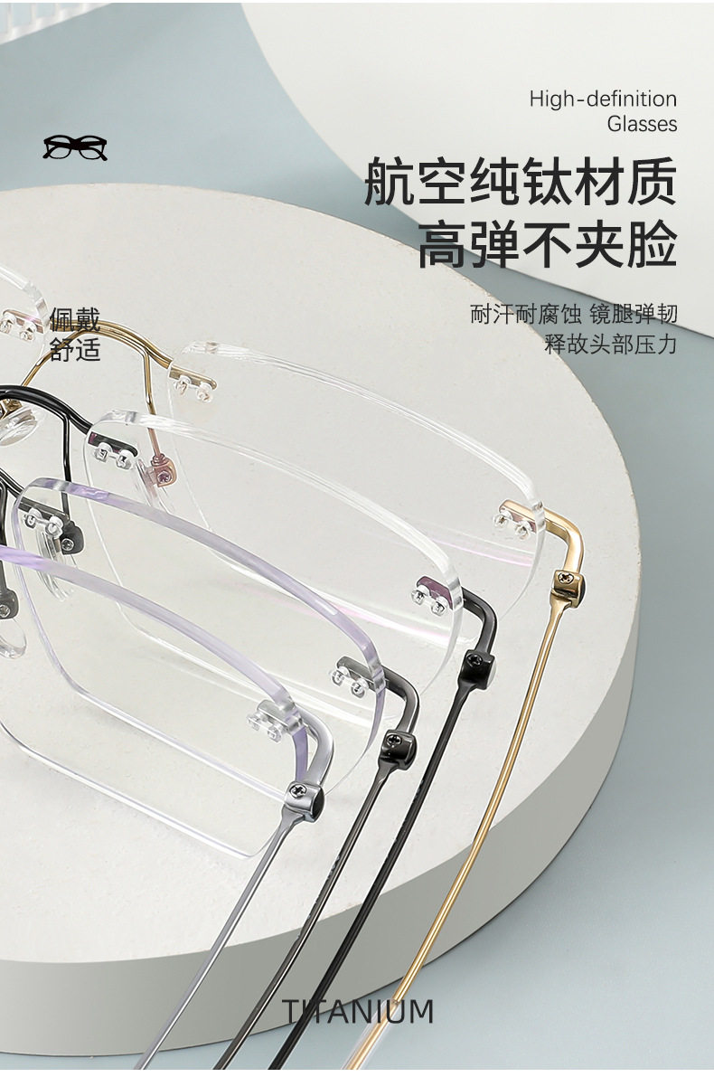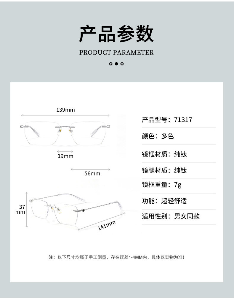 Ultra-Light Frameless Pure Titanium Frame Men's Frame High-End Eye Frame 71317 Square Frame Rimless Frame Myopia Glasses