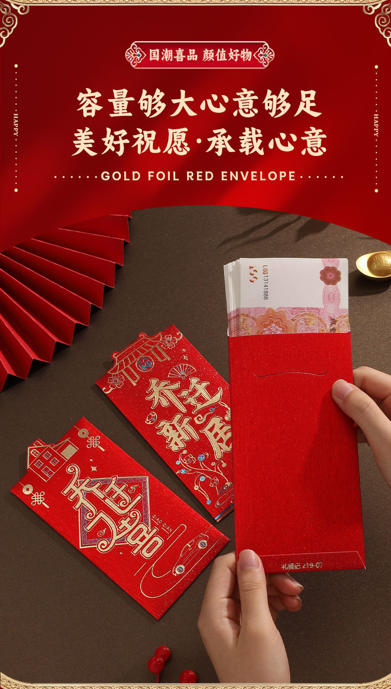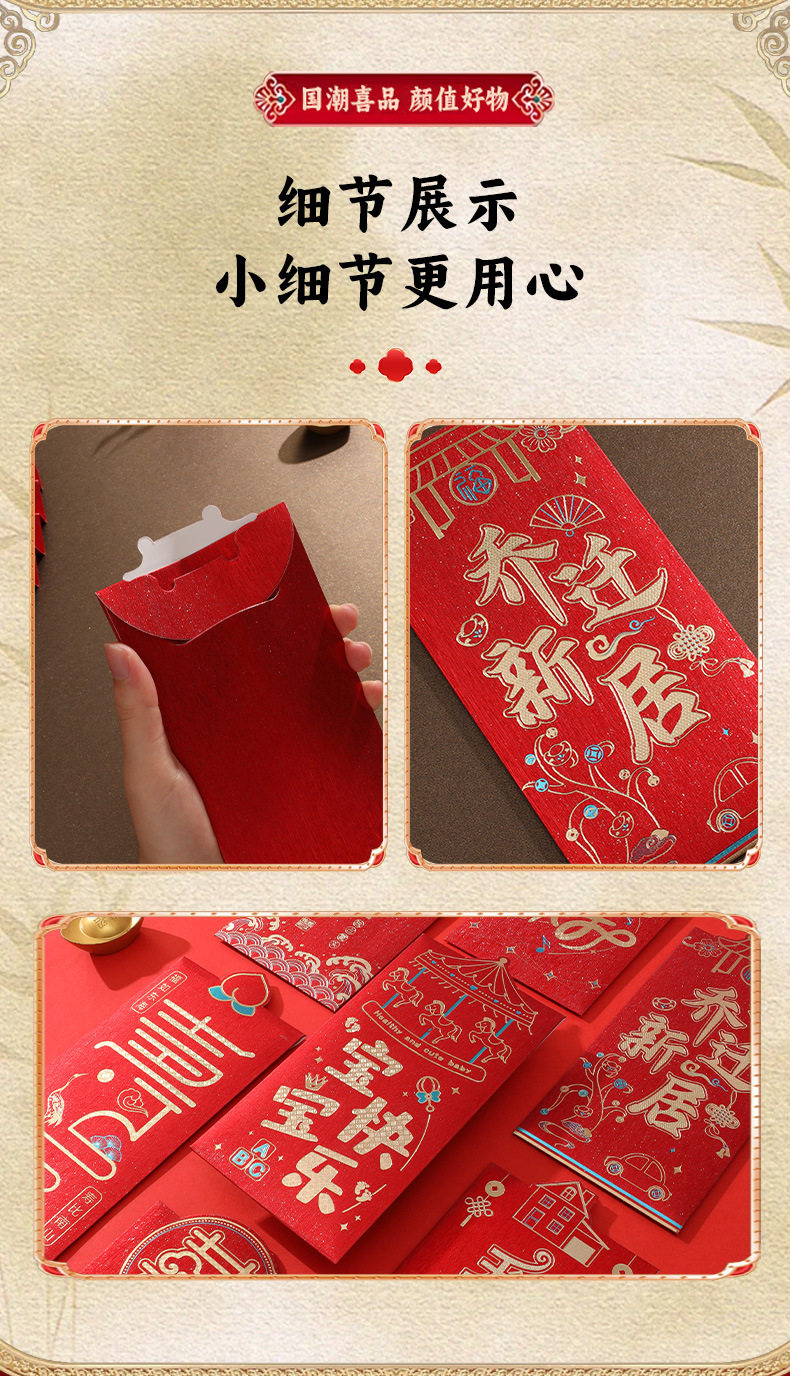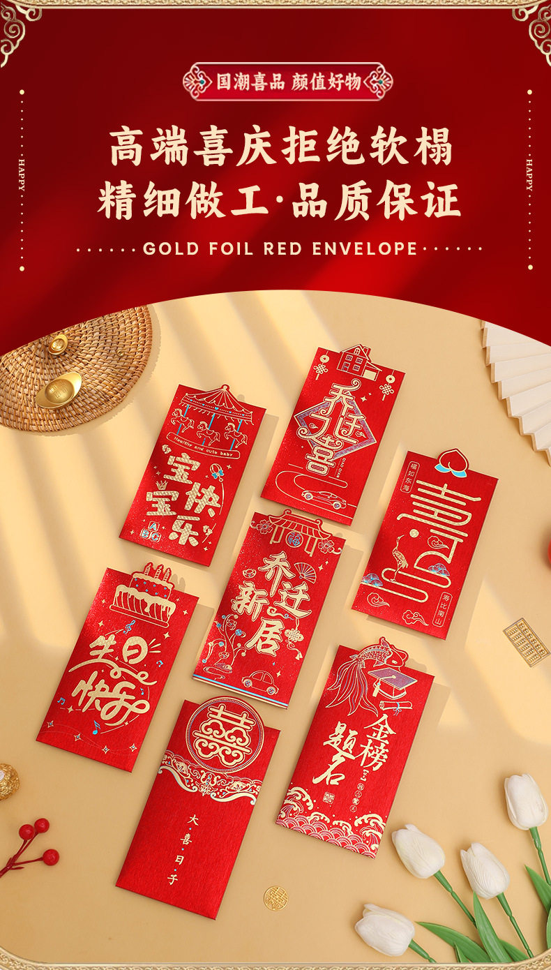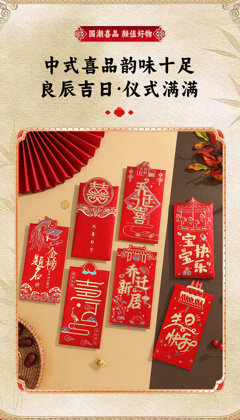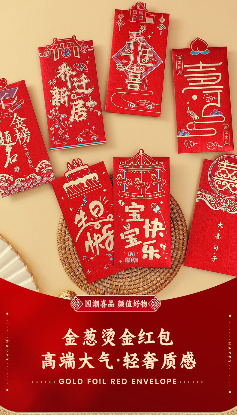 Red Envelopes for Academic Success, Housewarming Celebrations, New Homes, Happy Birthdays, Baby's Happiness, Weddings, Hundred-Yuan Notes, Thousand-Yuan Notes