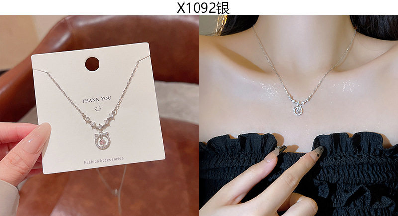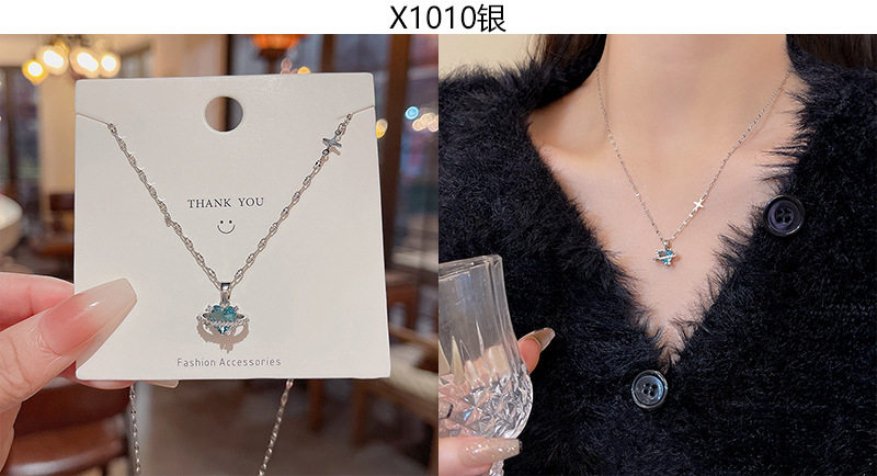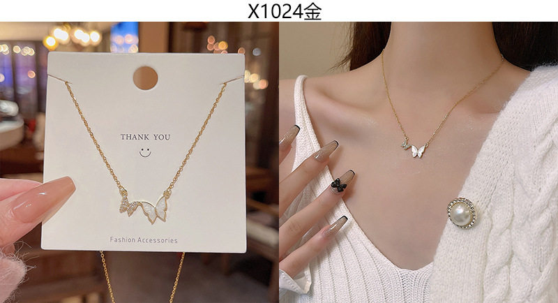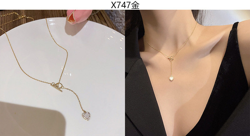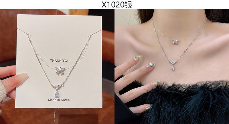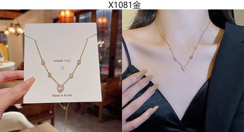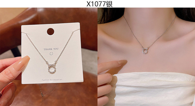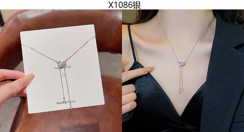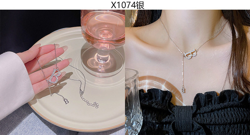 South Korea new light luxury niche titanium steel necklace women's advanced design zircon bow clavicle chain necklace wholesale