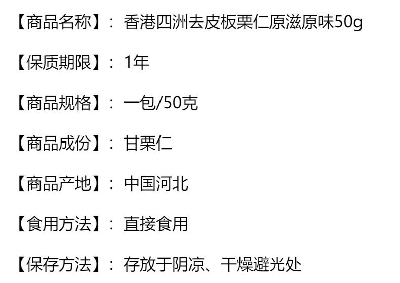 Hong Kong Sizhou peeled chestnut kernel original flavor 50g snack without adding Chinese high quality chestnut sweet taste strong