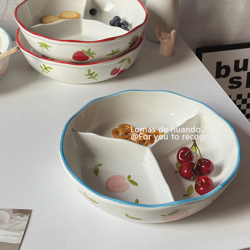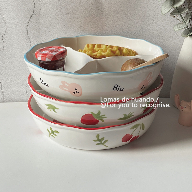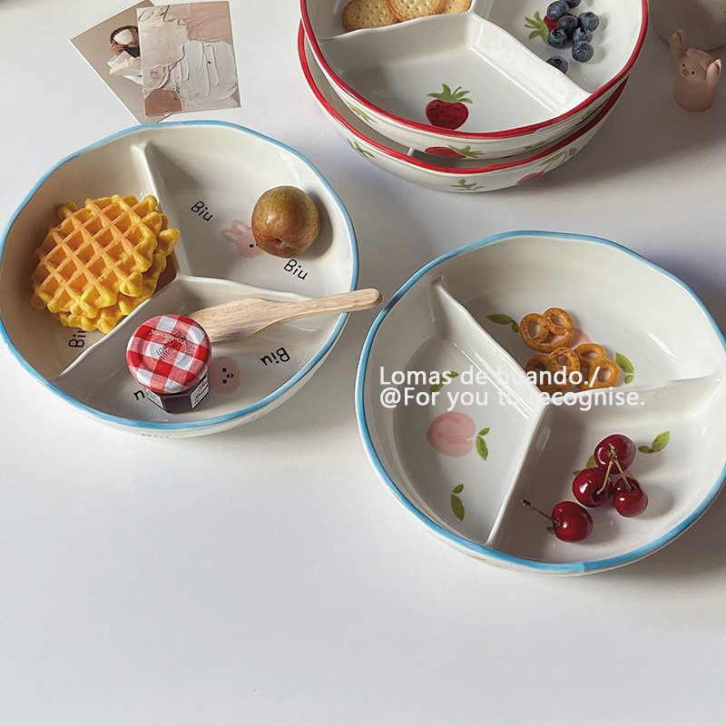 ins Divided Dinner Plate Household Ceramic Deepened with Lid Fat Reduction Quantitative Meal Bowl Divider Plate Fruit Plate Lunch Box