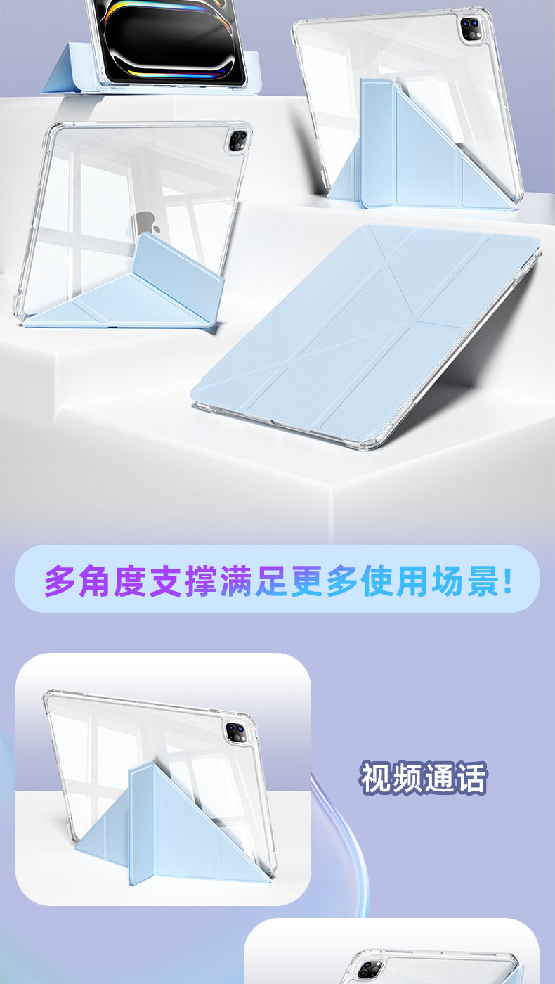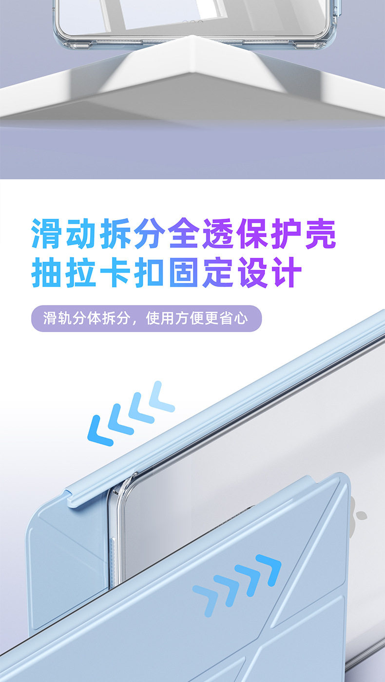 Thin and Detachable Protective Case with Pen Slot, Can Be Used as a Multi-Stand in Both Horizontal and Vertical Positions, Suitable for Ipad, Transparent Pc Bottom Shell, Tablet Anti-Bending