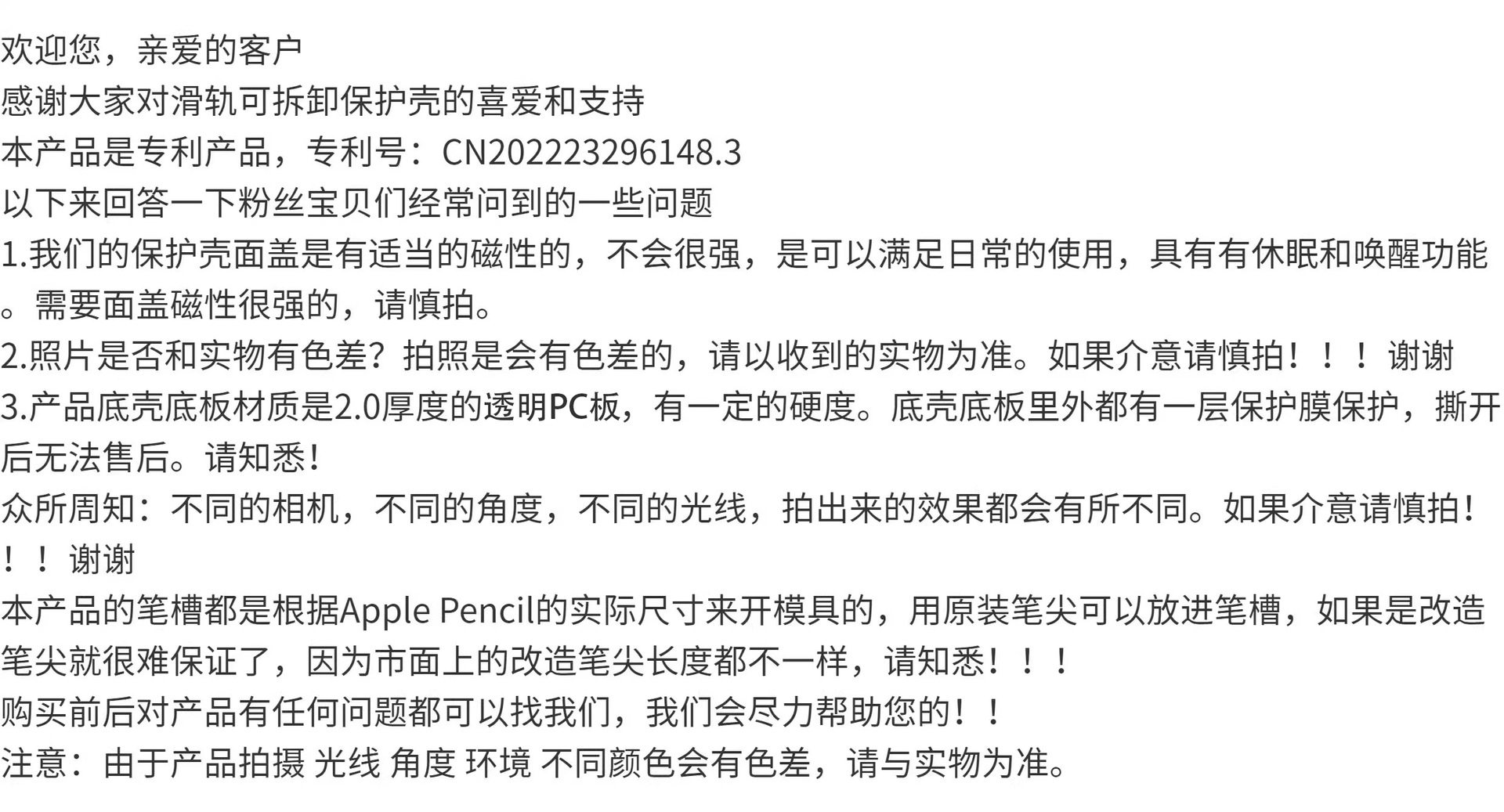 | Applicable models | Ipad mini6/7( 8.3inch ),Ipad 10th generation (10.9inch)/11th generation 2025 model (11inch),Ipad air6/7( 11inch )2024/2025 model,Ipad air6/7( 13inch )2024/2025 model,Ipad pro 2024/2025( 11inch ),Ipad pro 2024/2025( 13inch ),Ipad pro 2018/2019/2020/2021/2022( 11inch ),Ipad air4/air5( 10.9inch ),Ipad 2019/2020/2021( 10.2inch ),Ipad pro 2020/2021/2022 version( 12.9inch ) |