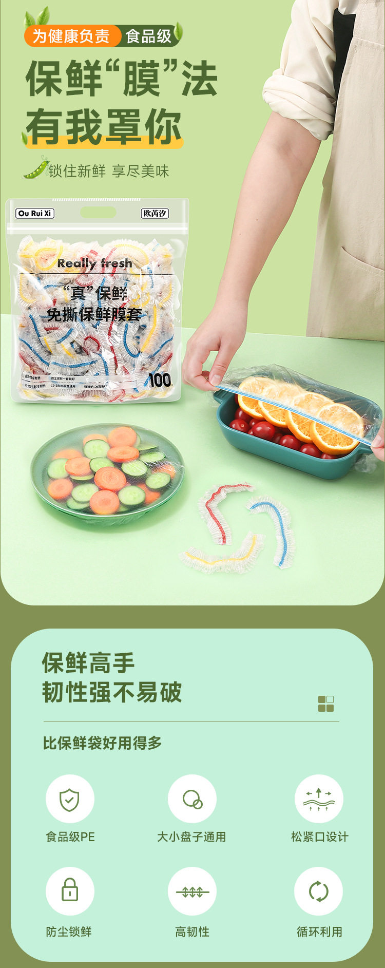 Disposable cling film cover food grade household refrigerator leftovers bowl cover cover universal elastic food cling film cover