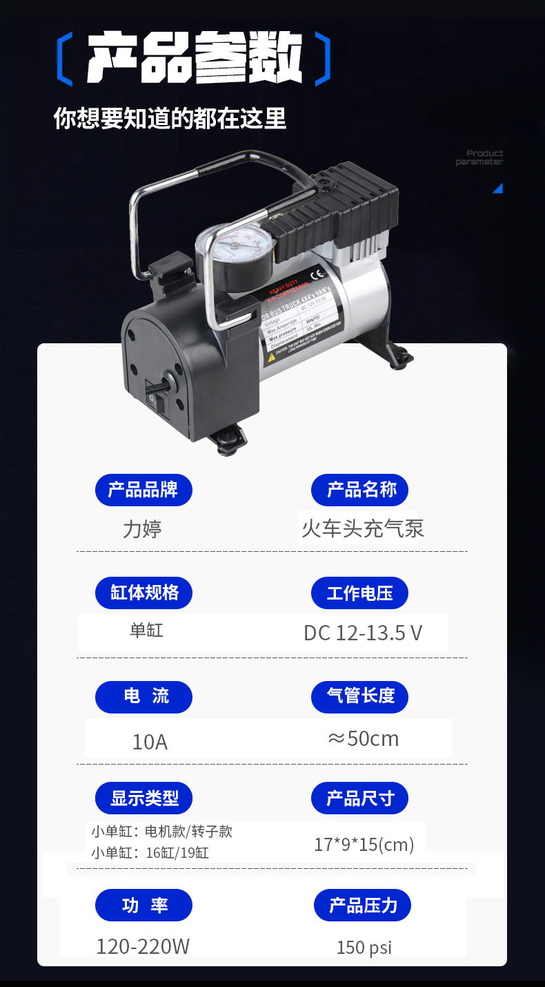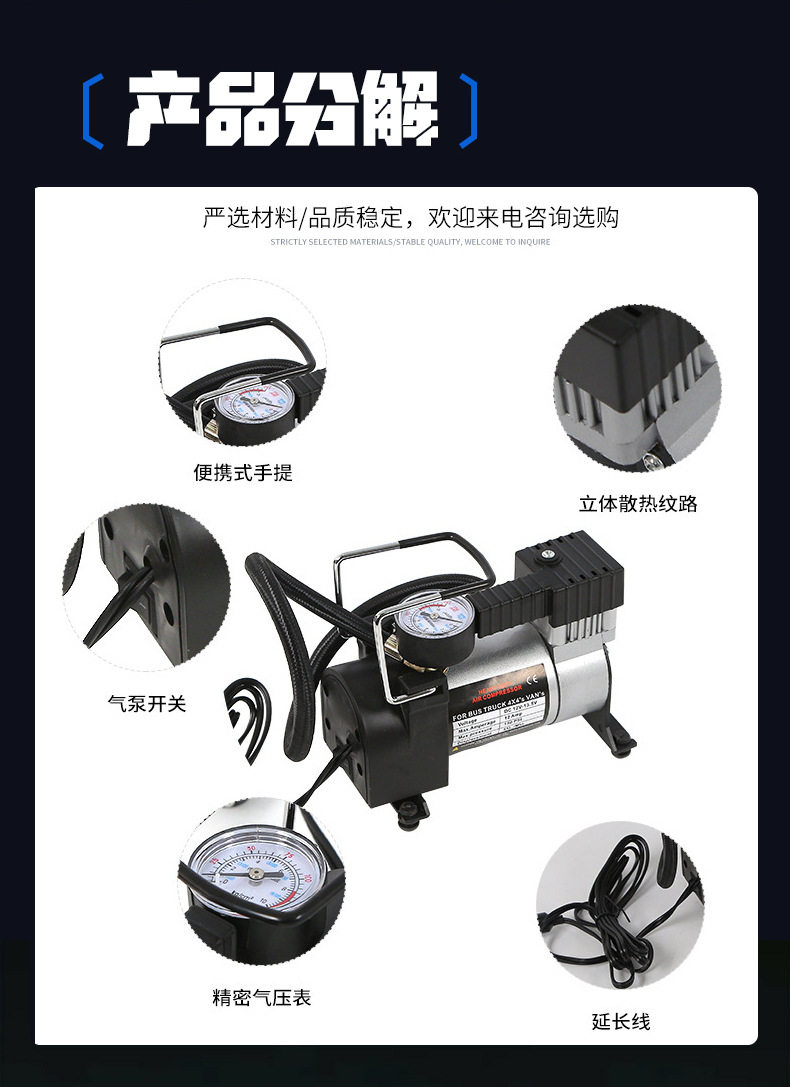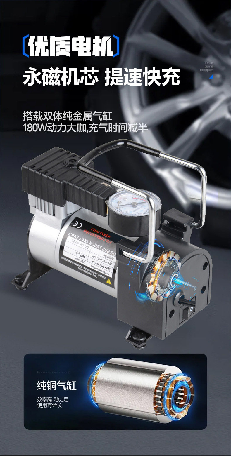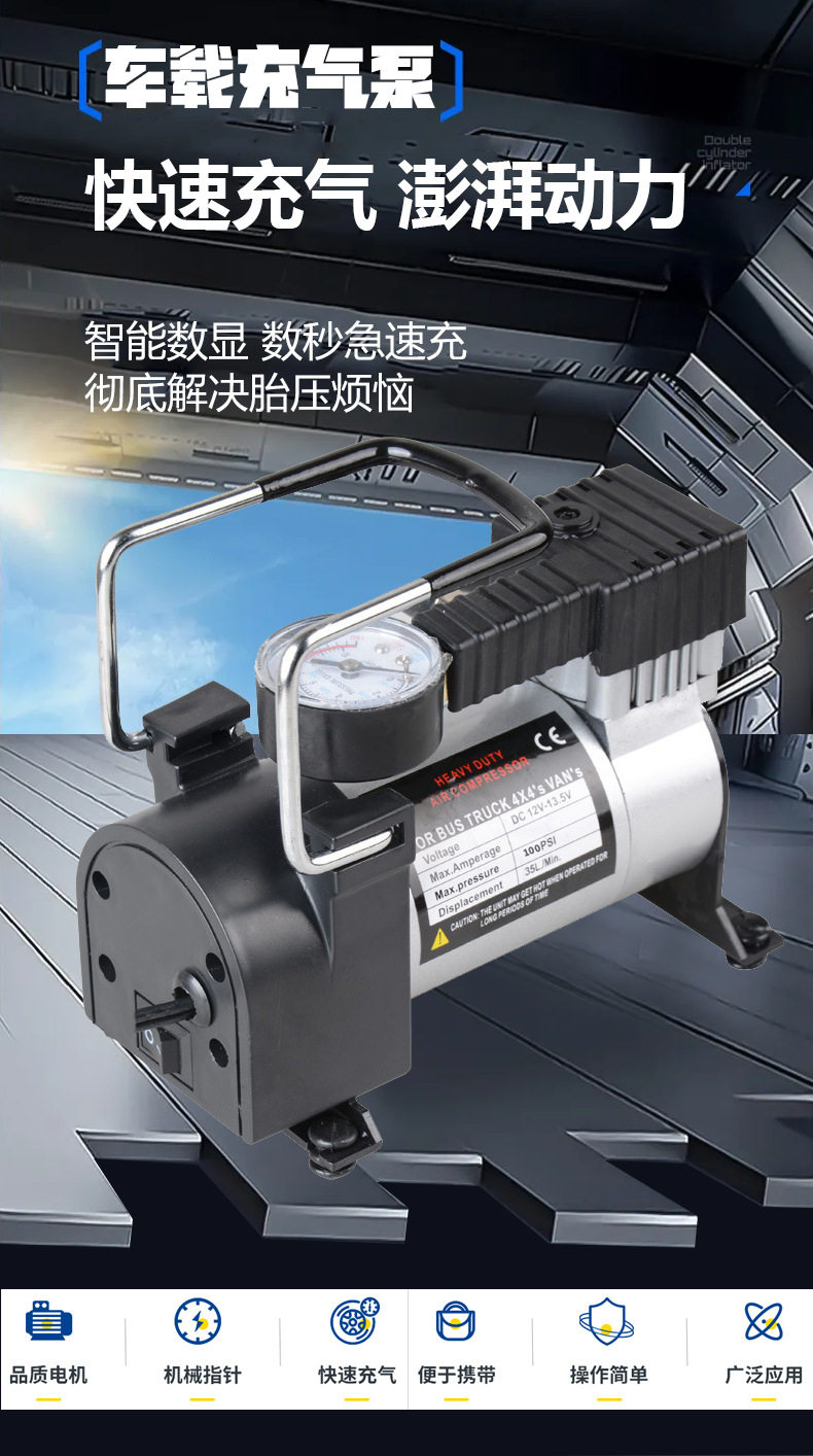 Car-Mounted Small Single-Cylinder Tire Inflator 12V Portable Metal Electric High-Pressure Rapid Inflation