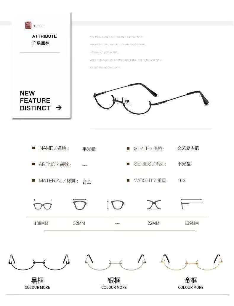 Cosplay Lower Half Frame Abstinence Style Decorative Glasses Popular Borderless Two-Dimensional Sexy Female Jk Soft Girl Frame
