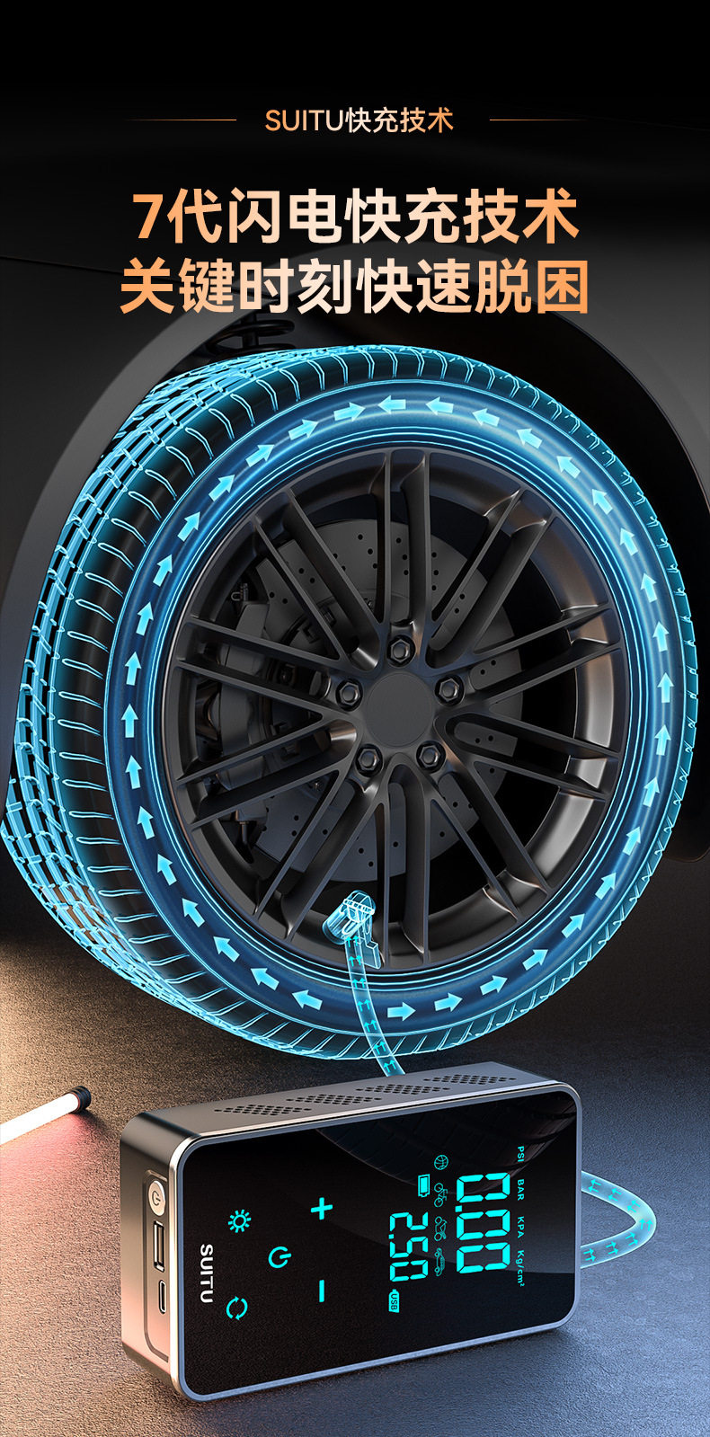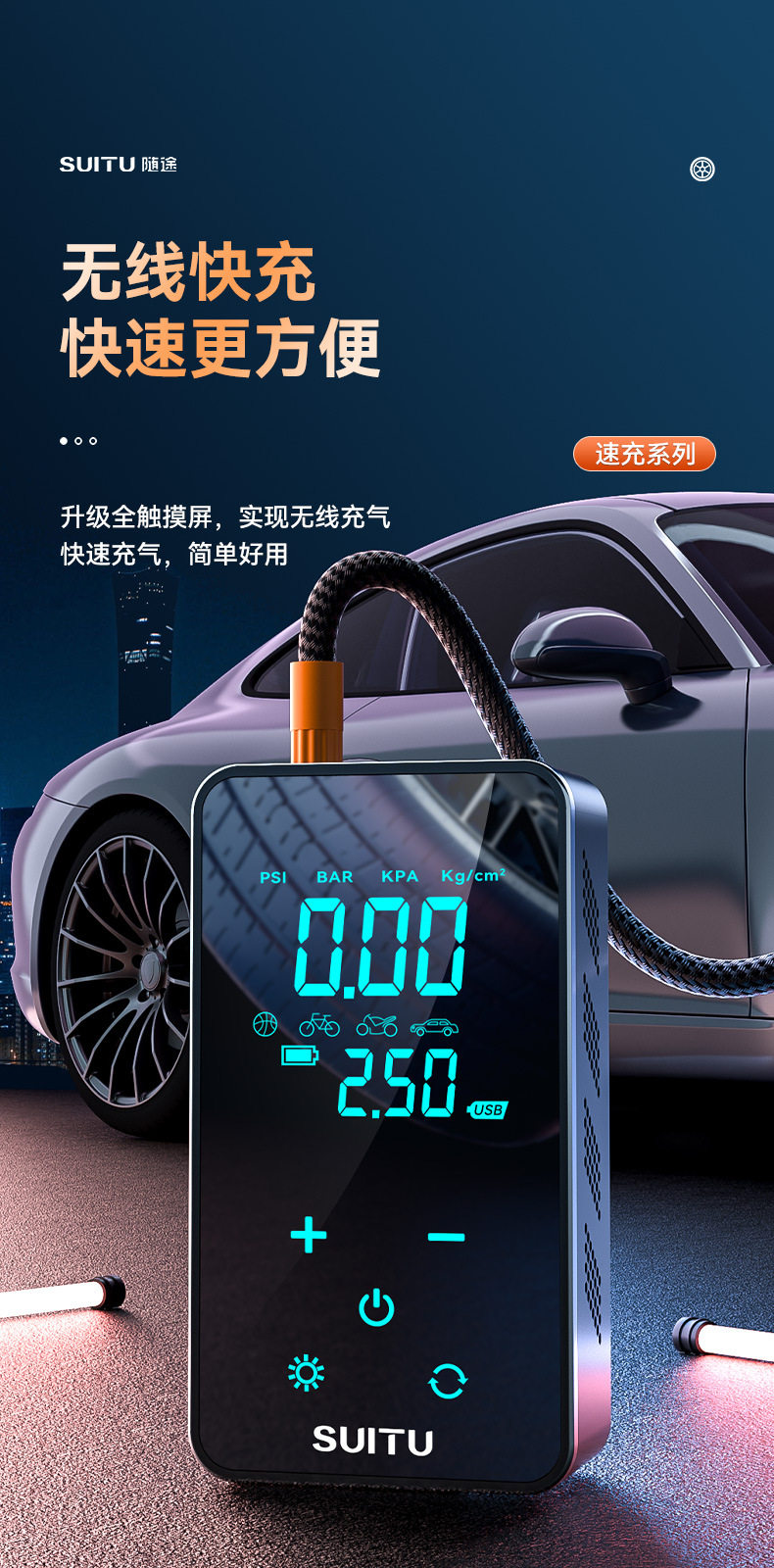 | Specifications | 12v cigarette lighter model, preset tire pressure, automatic start and stop,Wireless charging model, preset tire pressure, automatic start and stop,6000 mah emergency start wireless air pump all-in-one machine,8400 mah emergency start wireless air pump all-in-one machine,10000 mah emergency start wireless air pump all-in-one machine |