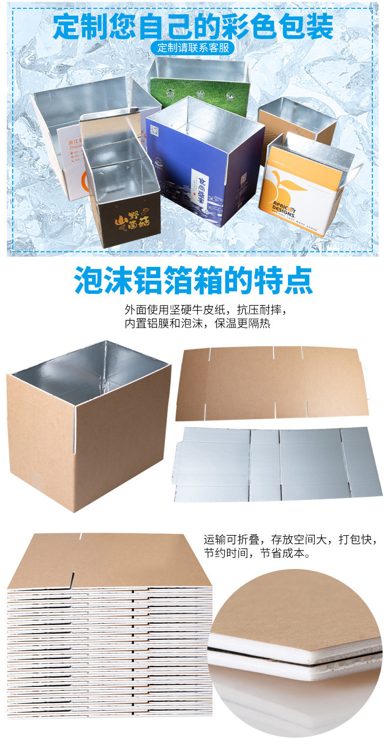 Heat preservation carton spot wholesale cold chain packaging aluminum foil heat insulation seafood fresh fruit vegetable folding foam box