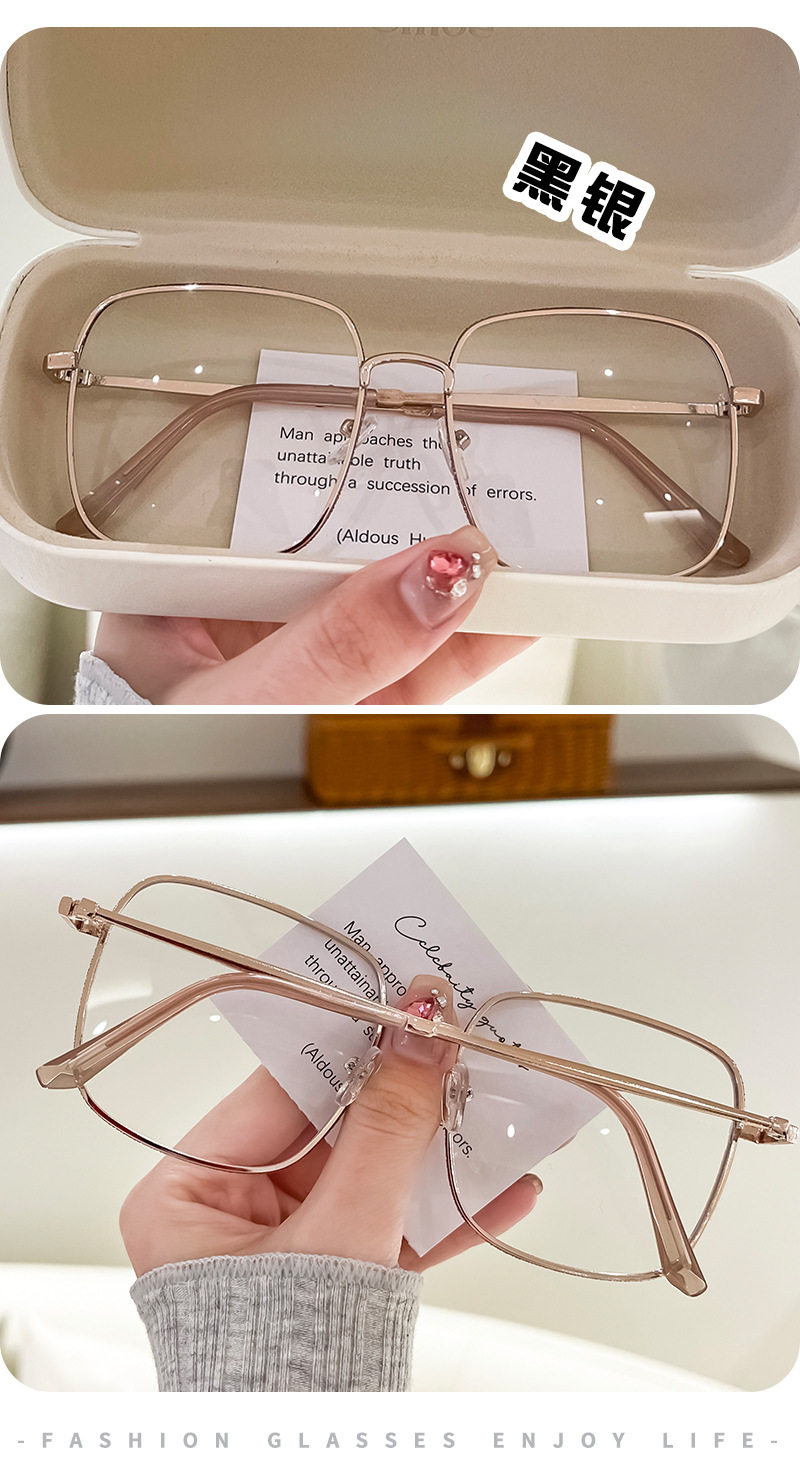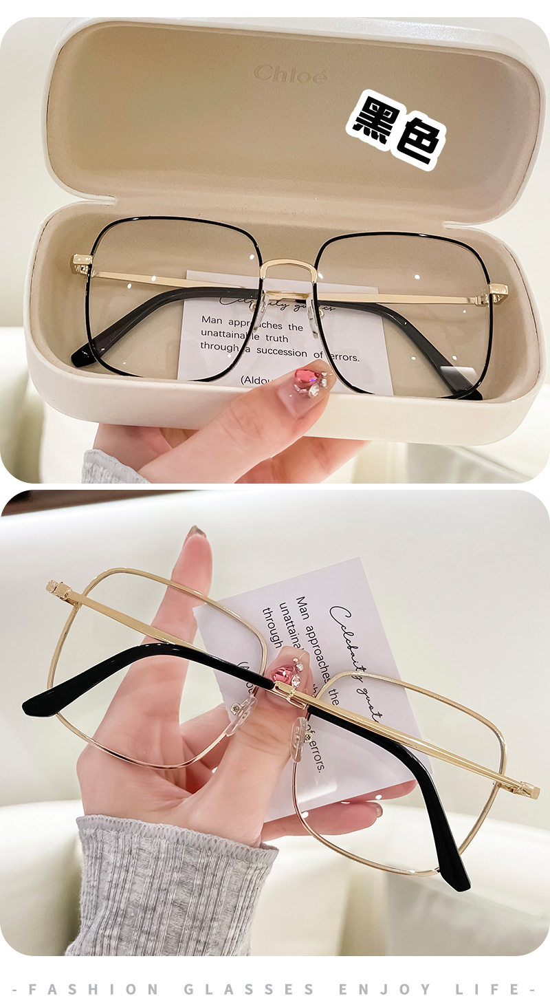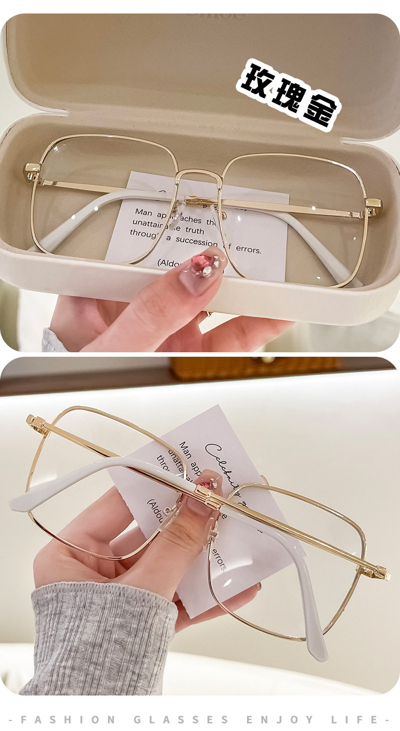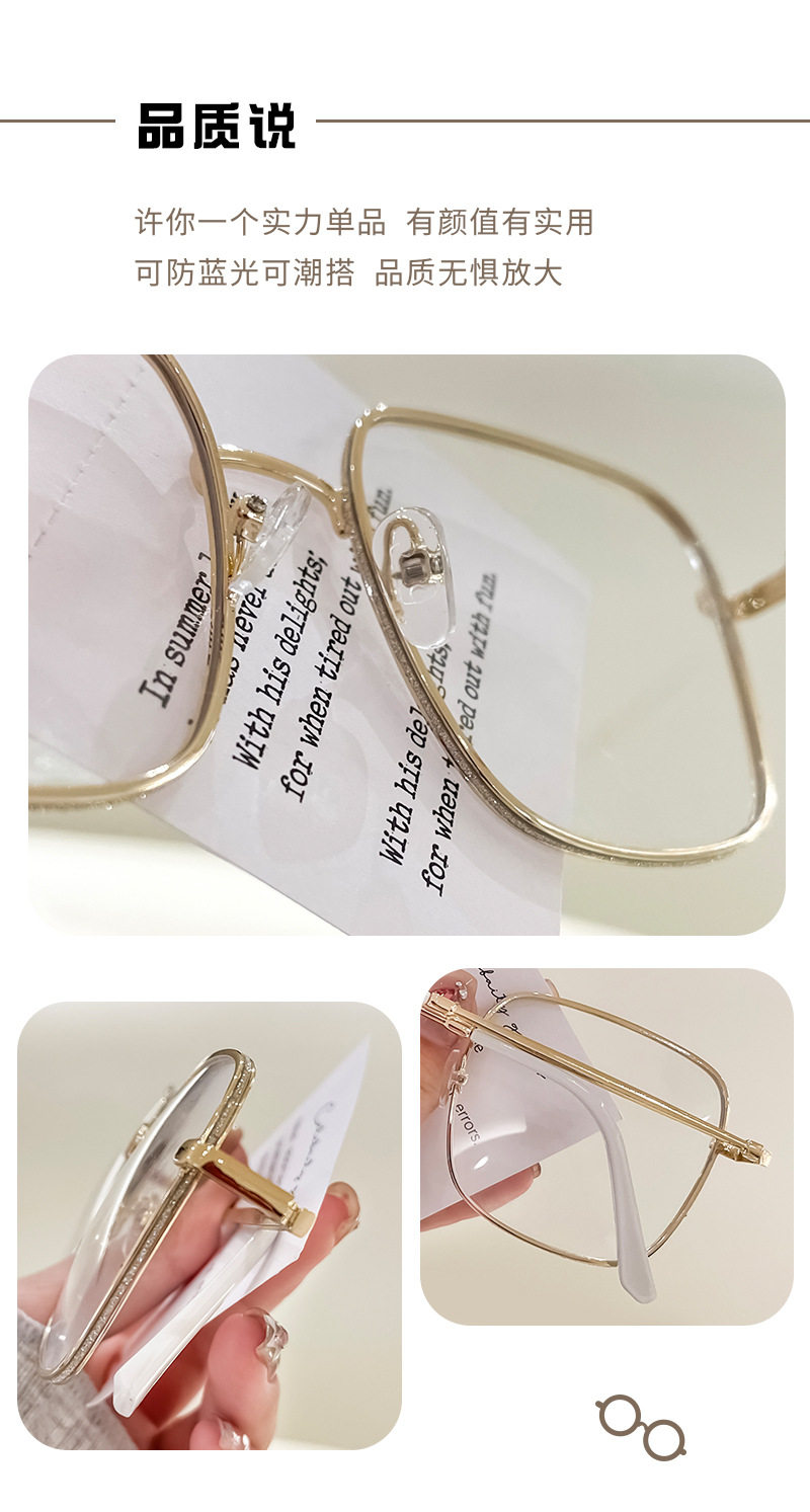 Versatile Anti-Blue Light Glasses for Women, Plain Glasses with Glitter-Edged Metal Frames, Trendy for Large Faces, Slimming Effect, Metal Frame, Popular Style