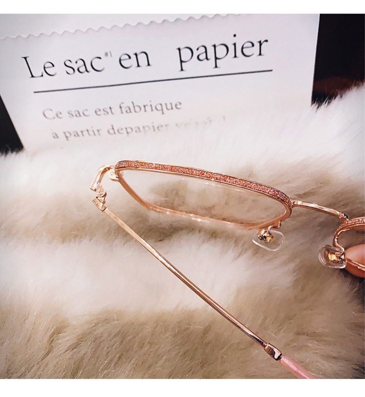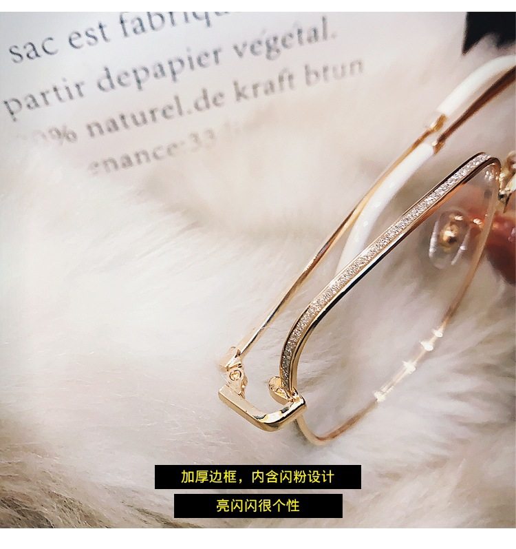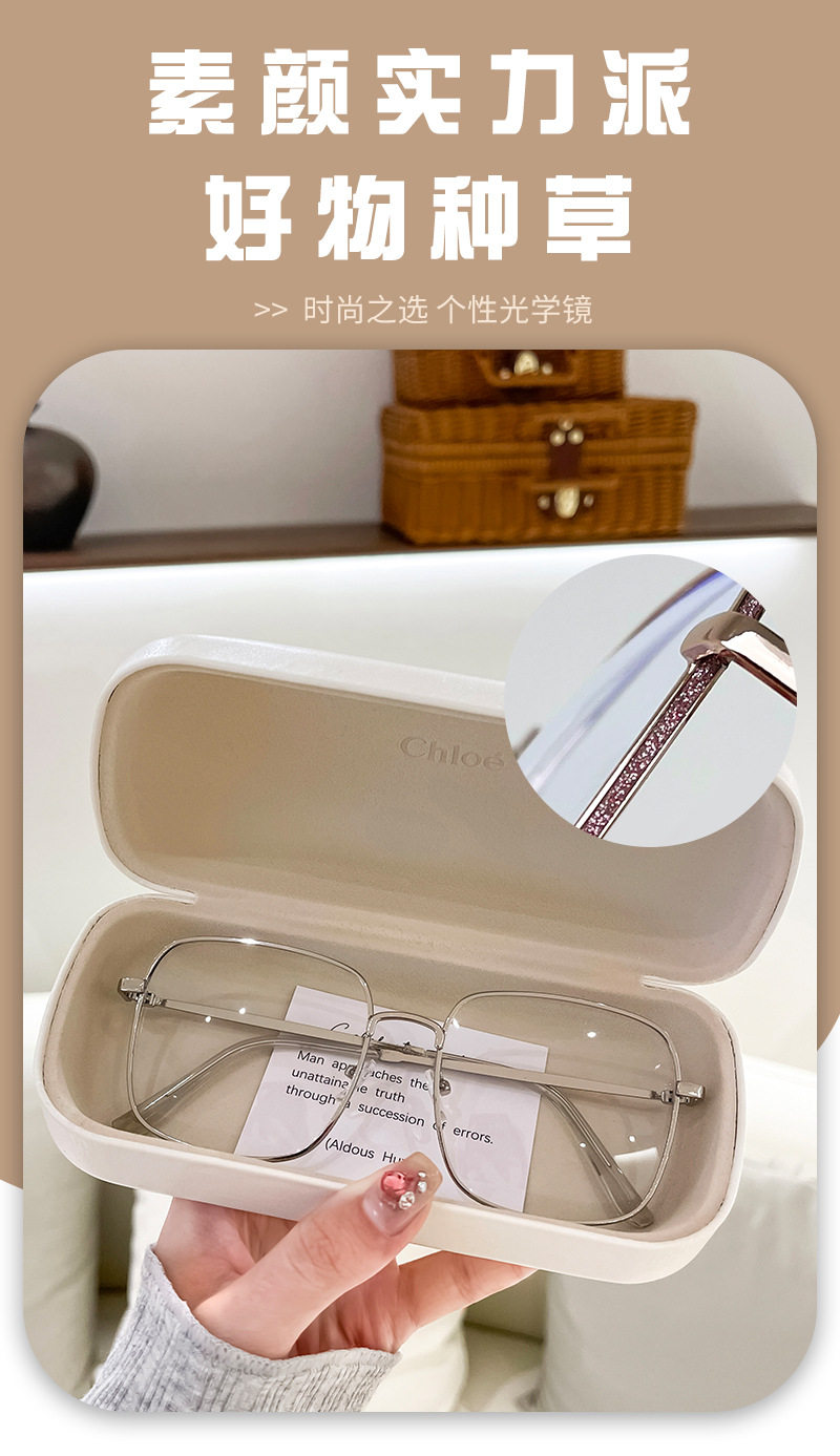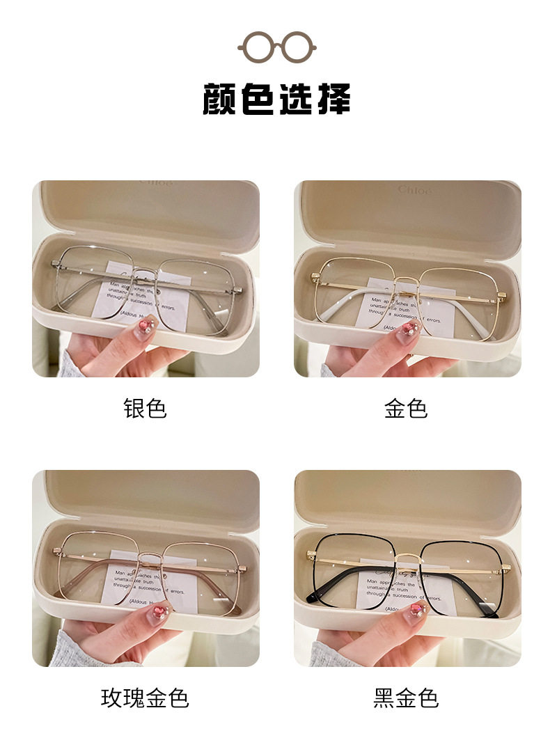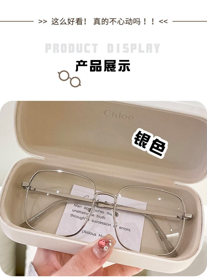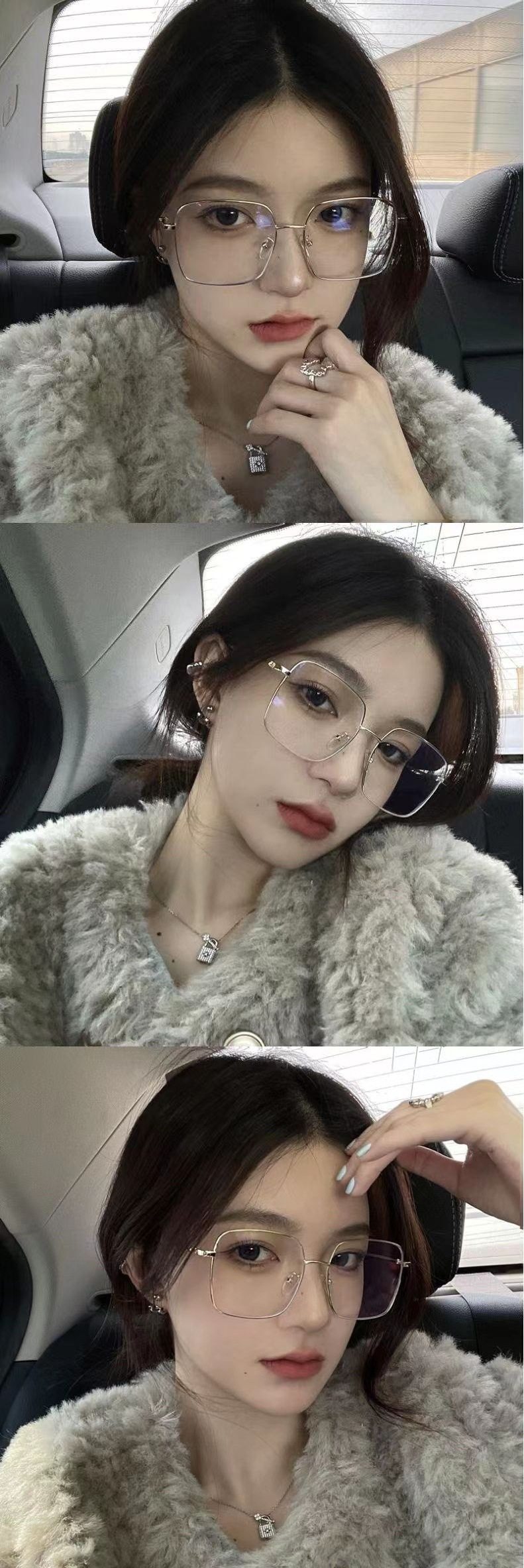 Versatile Anti-Blue Light Glasses for Women, Plain Glasses with Glitter-Edged Metal Frames, Trendy for Large Faces, Slimming Effect, Metal Frame, Popular Style