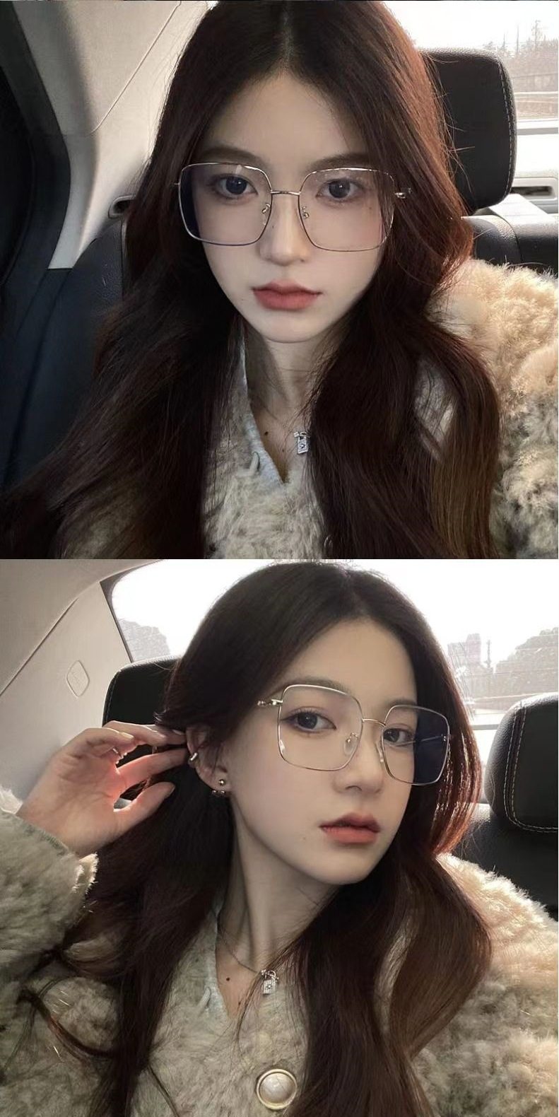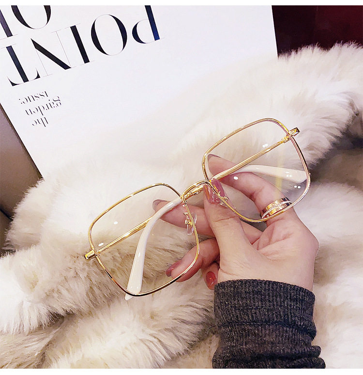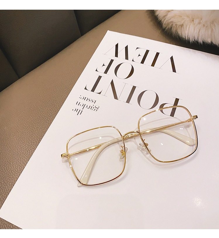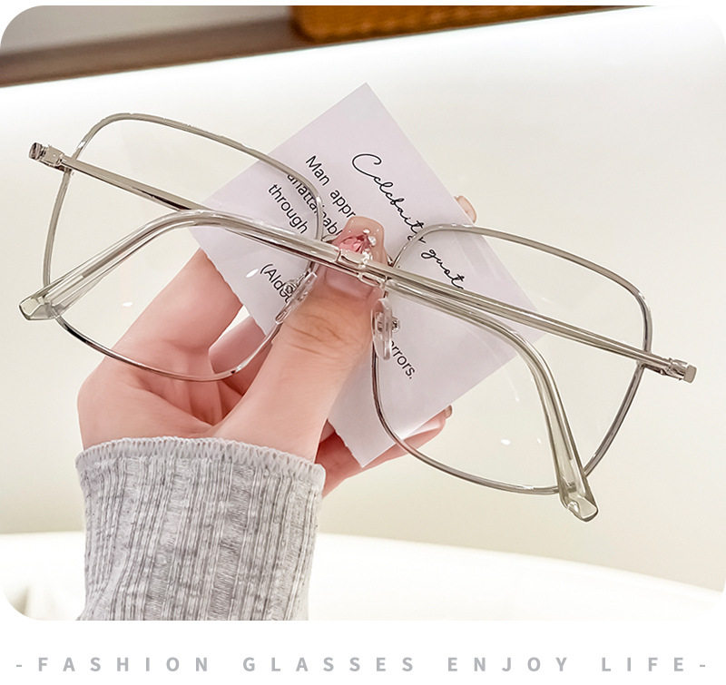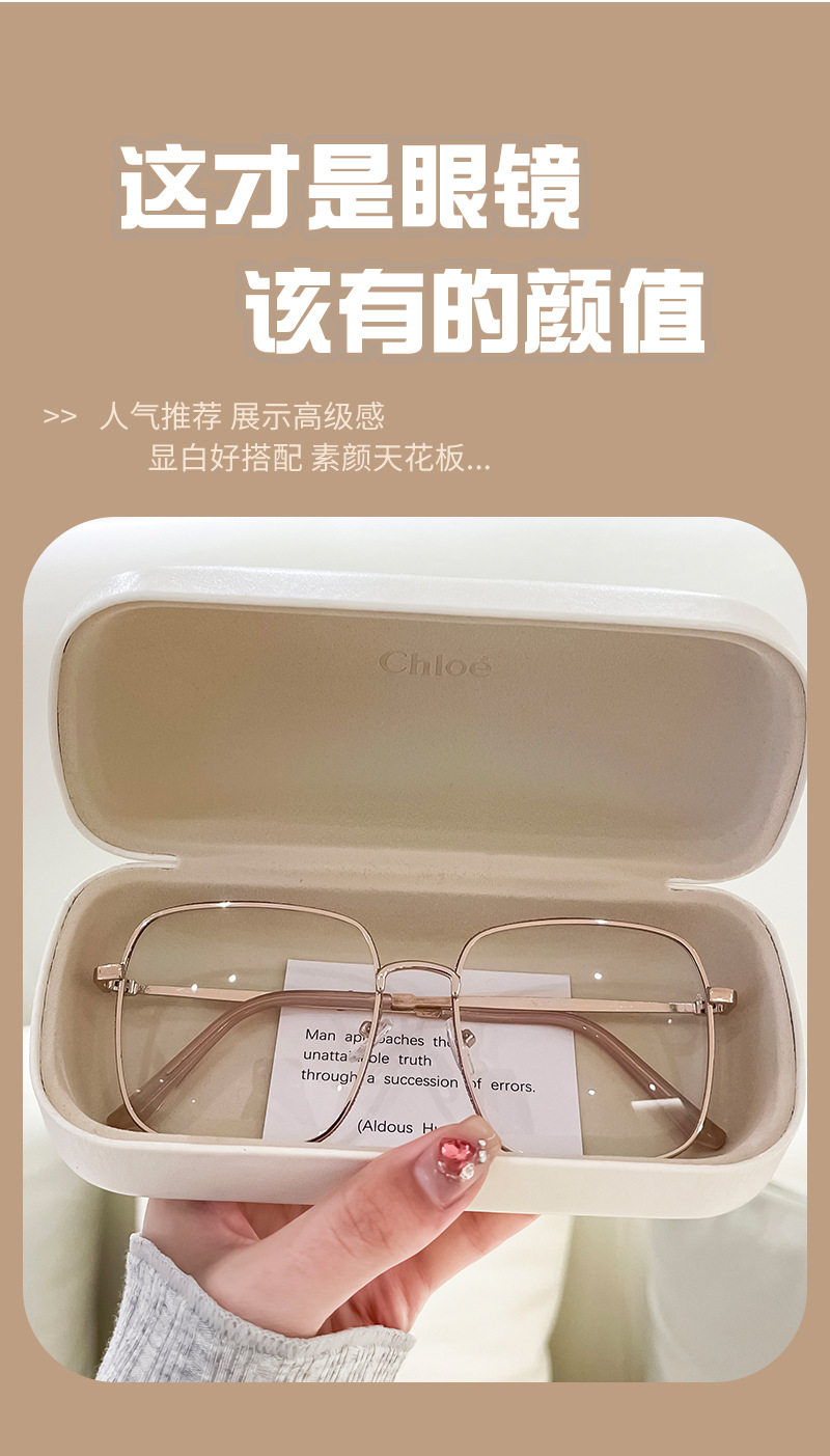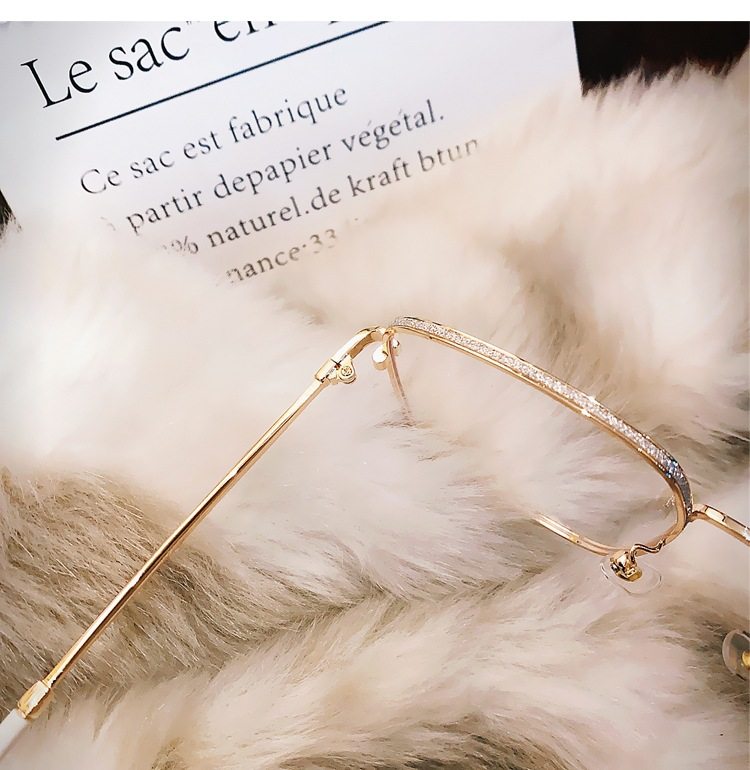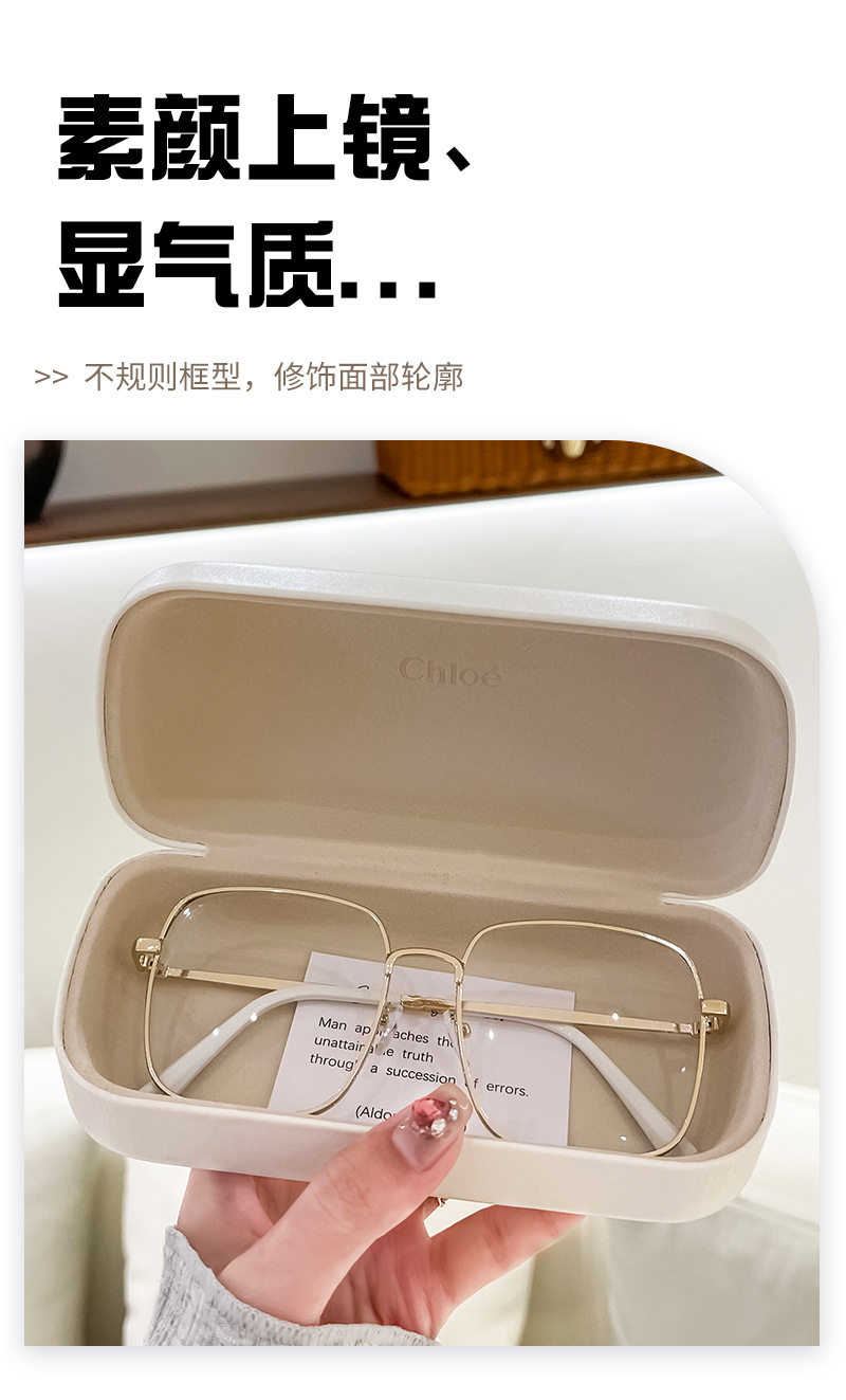 Versatile Anti-Blue Light Glasses for Women, Plain Glasses with Glitter-Edged Metal Frames, Trendy for Large Faces, Slimming Effect, Metal Frame, Popular Style