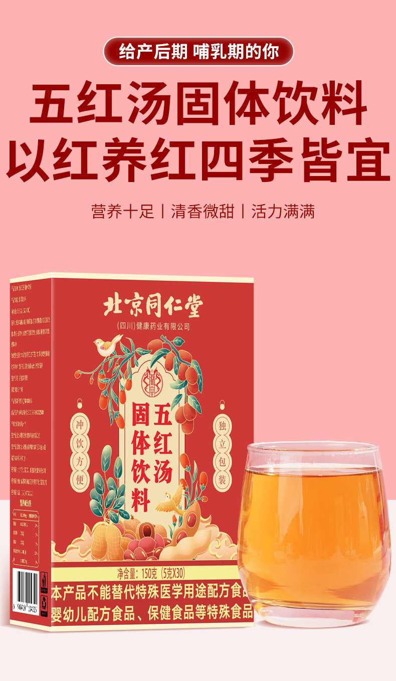 Beijing Tongrentang Five Red Soup Longan Brown Sugar Ginger Tea Black Sugar Ejiao Ginger Jujube Tea Black Red Goji Berry Tea One-Piece Dropshipping