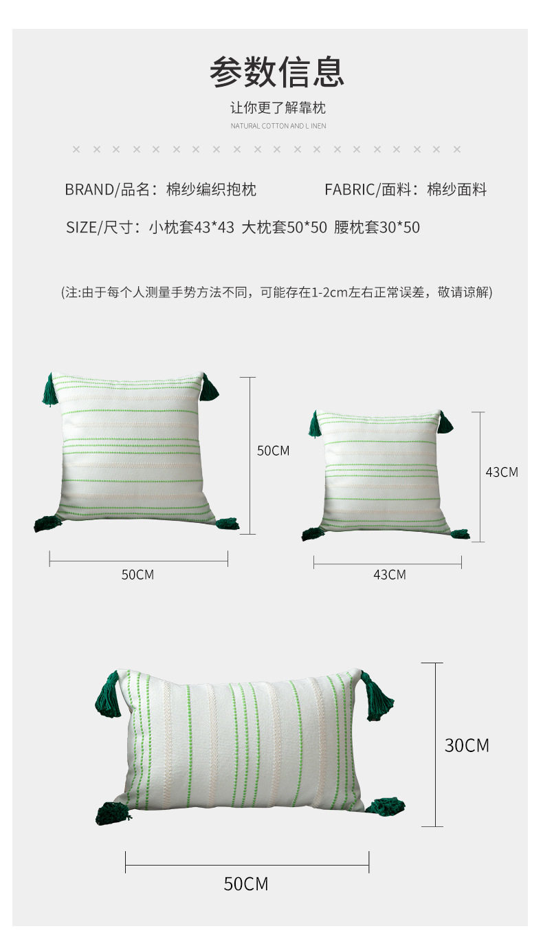 | Color | Green and white striped pillowcase 50*50cm,Green and white striped pillowcase 43*43cm,Green and white striped waist pillow case 30*50cm,Black and white striped pillowcase 43*43cm,Black cut flower pillowcase 50*50,Black cut flower pillowcase 45*45,Black cut flower waist pillow case 30*50,White flower cut waist pillow case 30*50,Romantic full house waist pillow-yellow tufted 30*50cm,Tufted pillow-white ball 45*45cm |