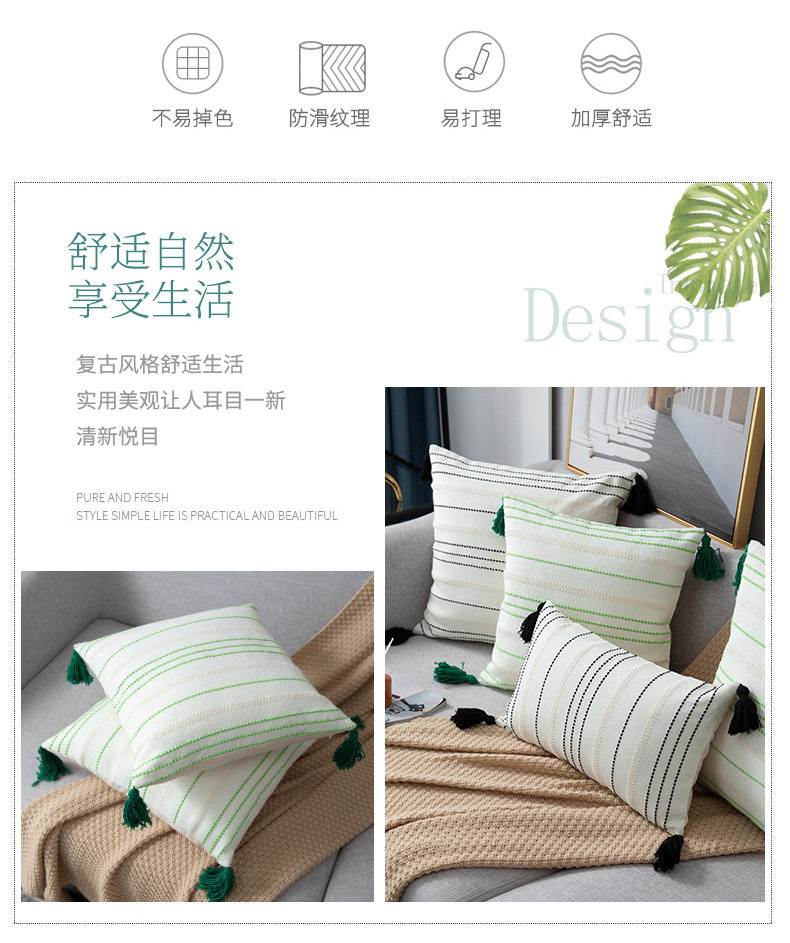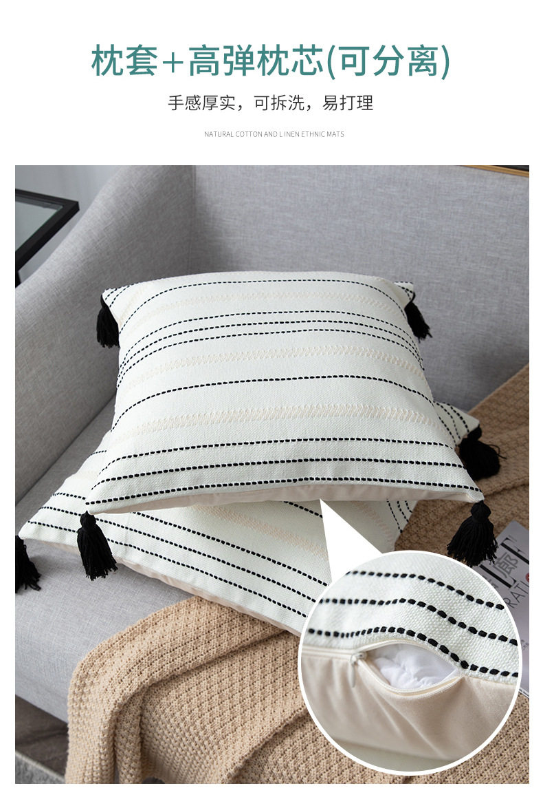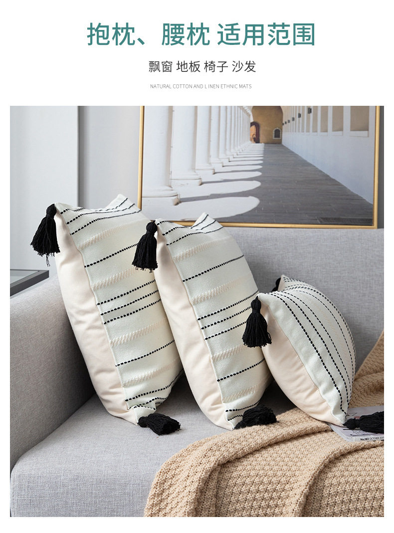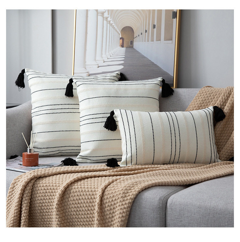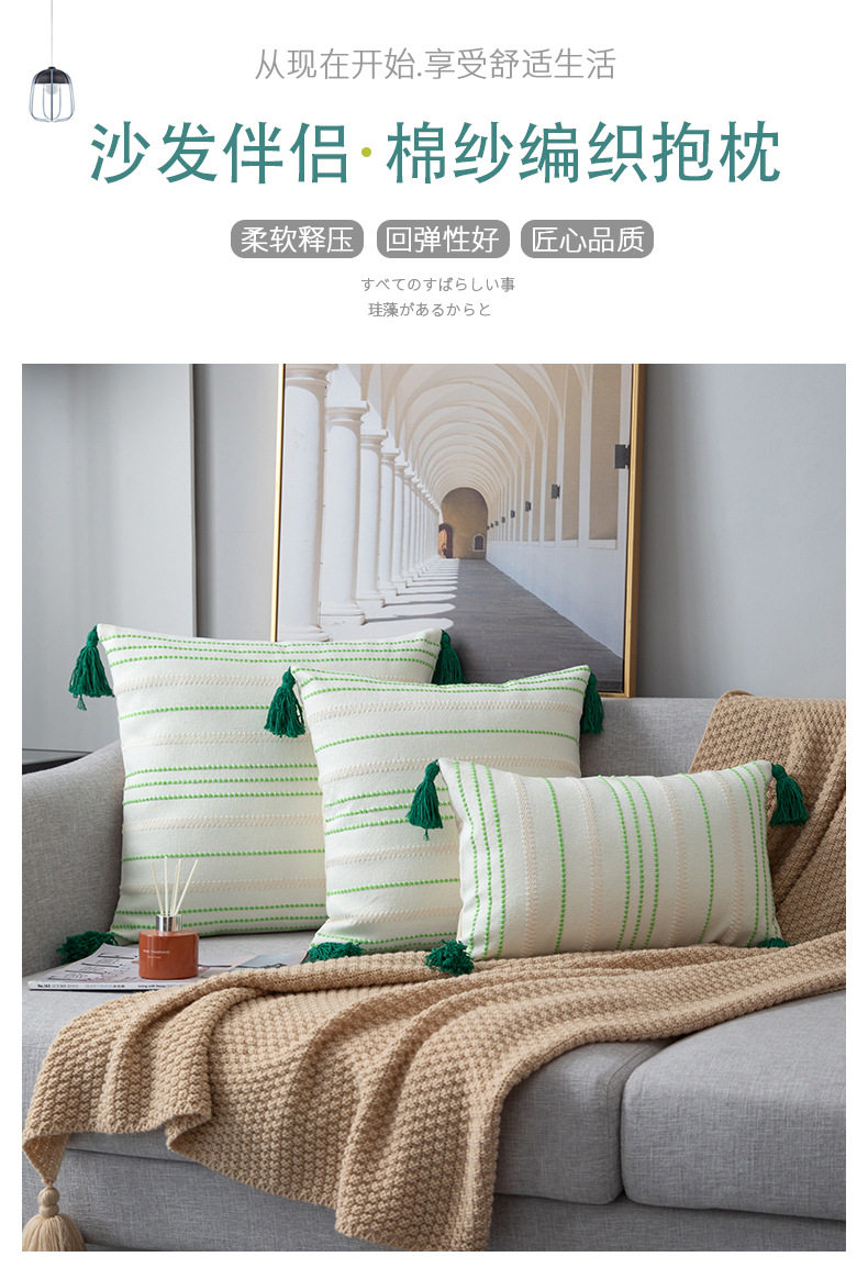 Modern Minimalist Living Room Stripesd Tassel Sofa Pillow Scandinavian B&B Bay Window Pillow Bedroom Bedside Cushion Waist Pillow
