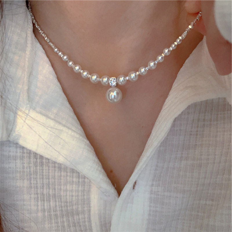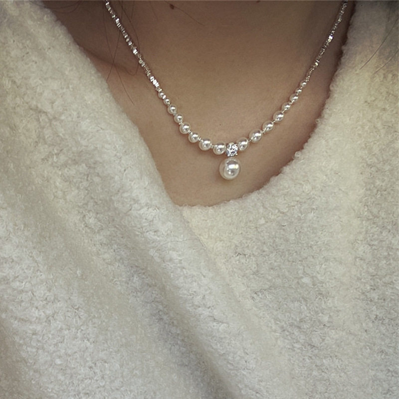 High-grade Sense Broken Silver Metal Pearl Necklace Women's French Style Retro Personalized Simple All-match Elegant Necklace Chain Clavicle Chain