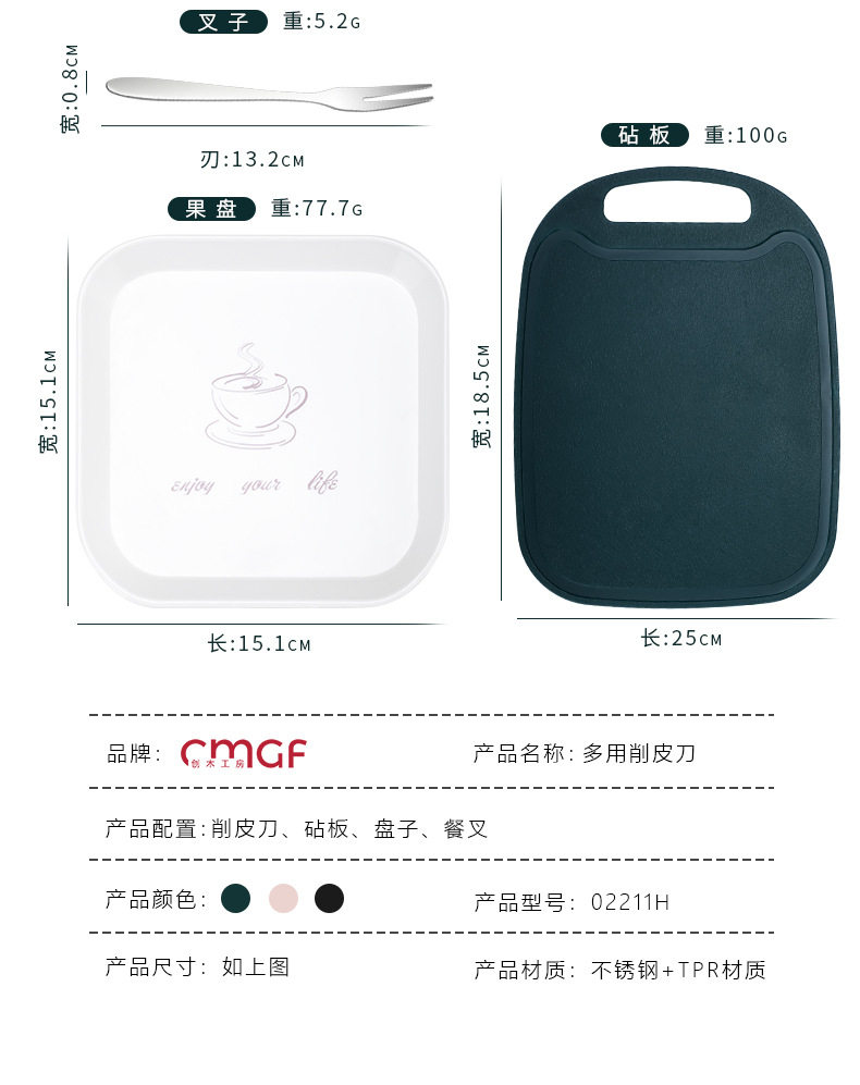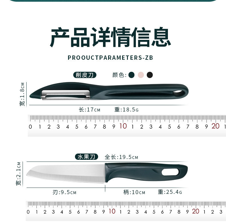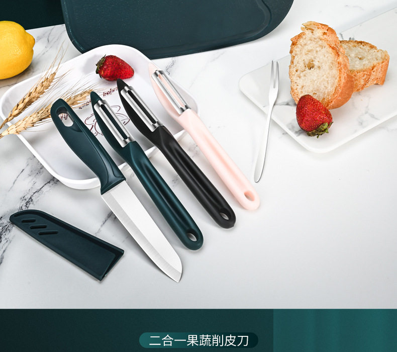 | Specifications | Single paring knife [dark green]],Two paring knives [dark green]],Three paring knives [dark green]],Three-color Peeler "green + powder + Black],Peeling knife + fruit knife [gift knife set]],Single paring knife [black]],Two paring knives [black]],Three paring knives [black]],Single paring knife [pink]],Two paring knives [pink]],Three paring knives [pink]],Melon Planer + fruit knife + fruit cutting board three-piece set [gift knife set]],Melon Planer + fruit knife + fruit cutting plate + stainless steel fork * 4 [gift knife cover] eat melon,Melon planing + fruit knife + fruit cutting plate + fruit plate + stainless steel fork * 4 [gift knife cover] to eat |