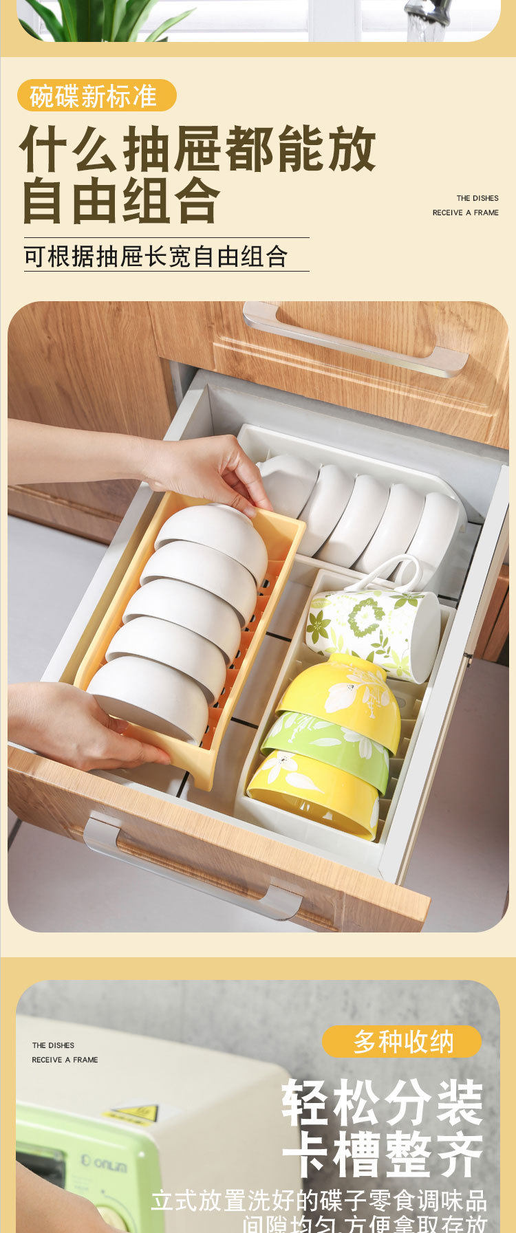 Kitchen Drain Dish Storage Rack Cabinet Single-Layer Dish Storage Rack Household Small Partition Storage Box