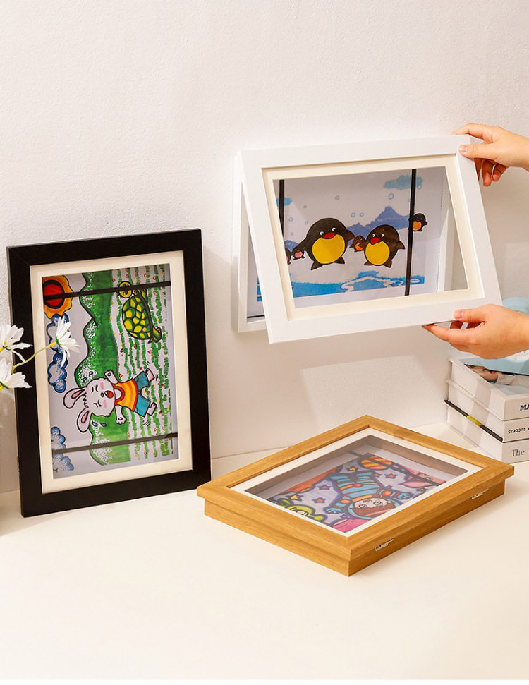 Amazon Flip Solid Wood Photo Frame Magnetic Frame A4 Children's Photo Frame 4K Storage Frame Art Works Award Frame
