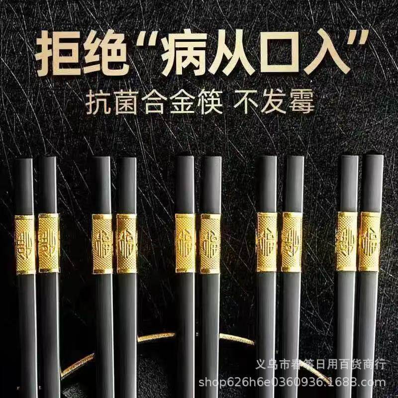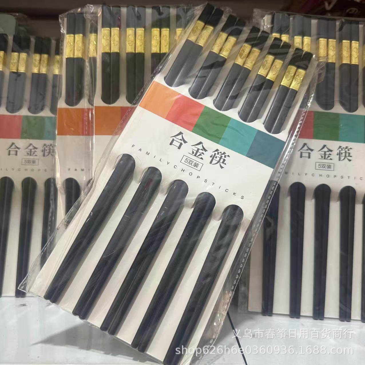 Wholesale alloy chopsticks 5 pairs of chopsticks non-moldy family new healthy meal alloy chopsticks non-slip temperature resistant chopsticks supply