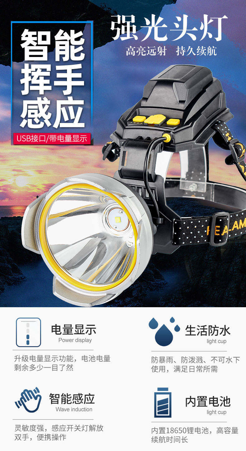 P50 induction headlamp LED lithium battery super bright long shot waterproof home outdoor super bright long shot headlamp