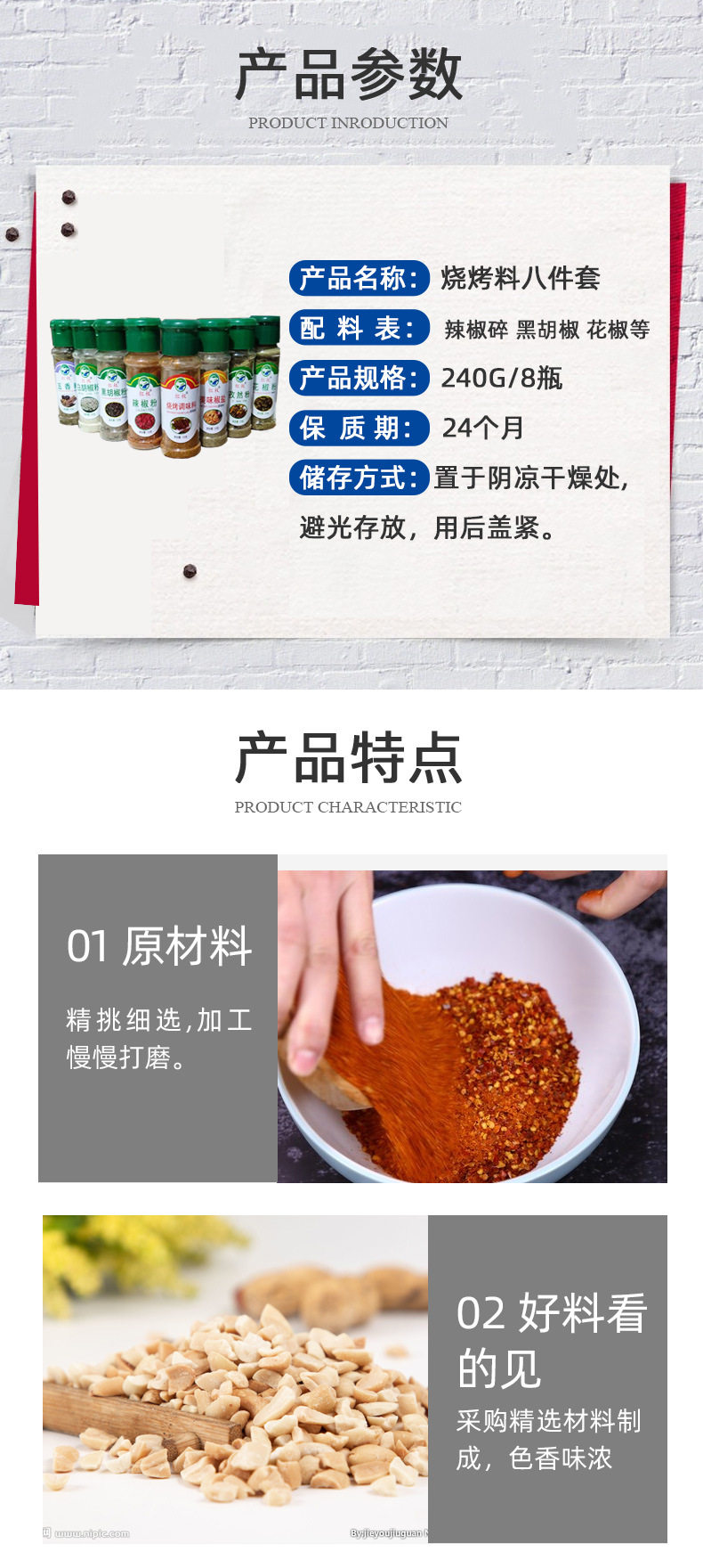 | Raw materials and ingredients | Pepper/cumin/Black pepper/White pepper/Pepper, etc. |