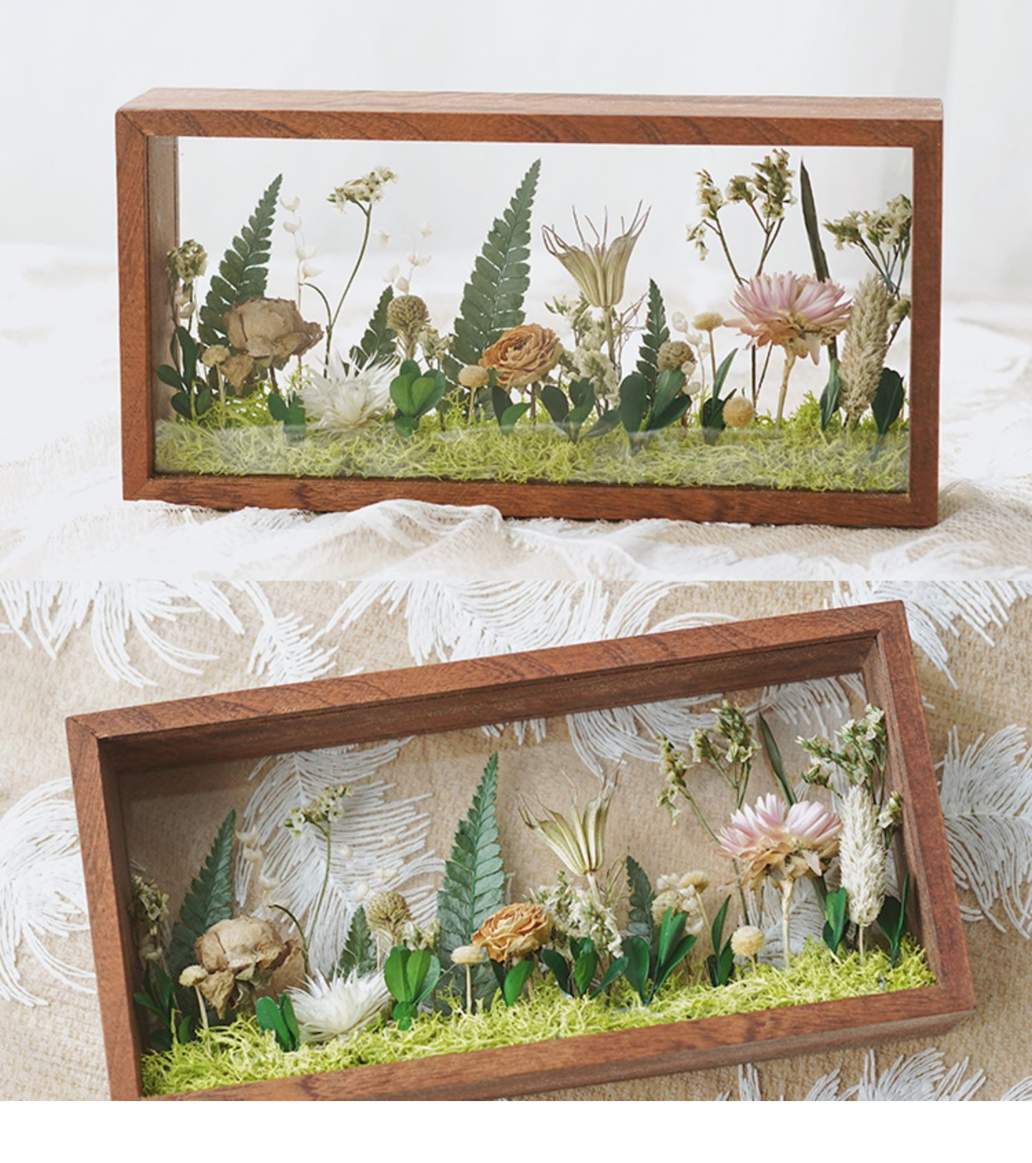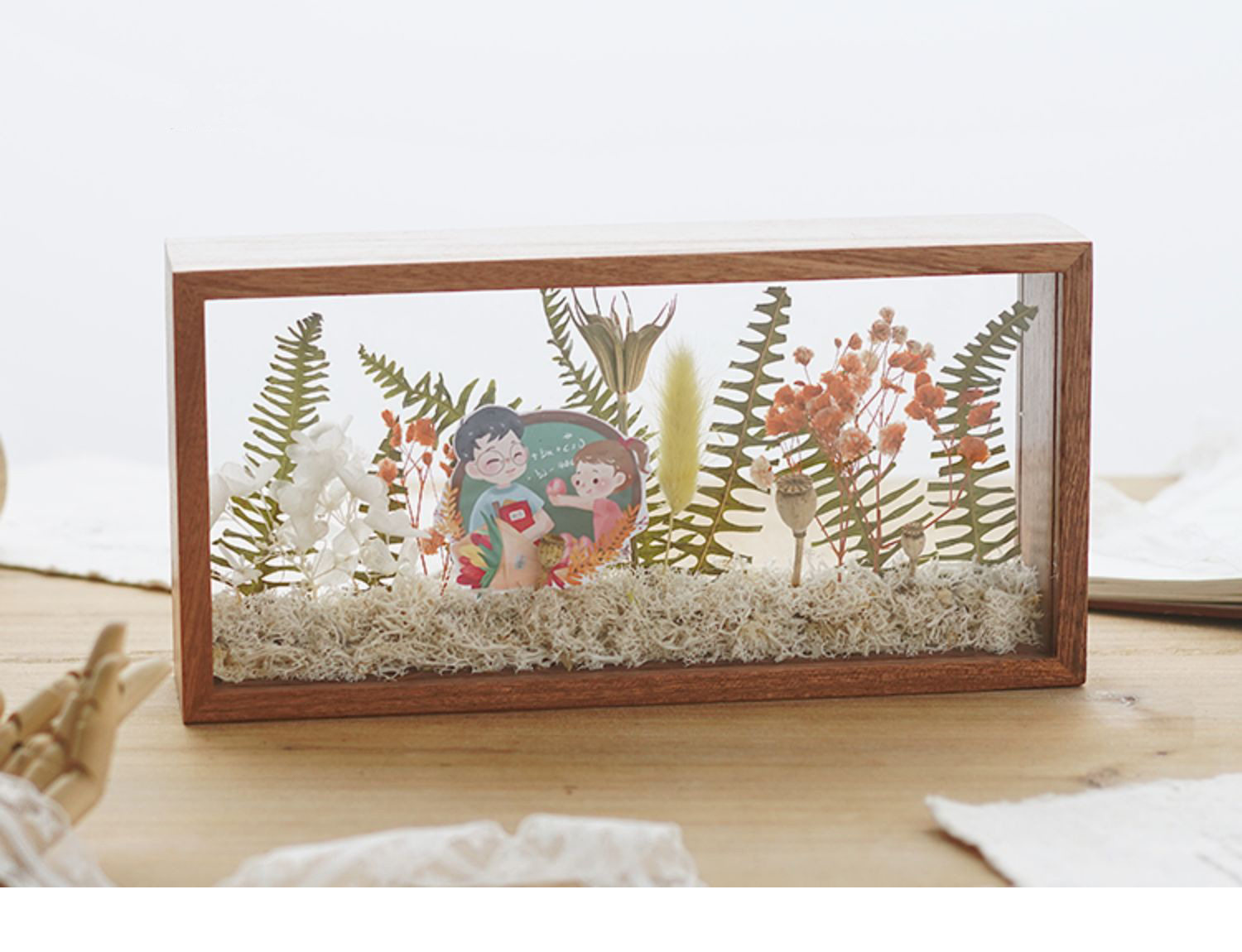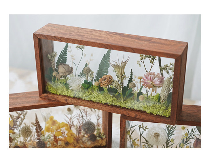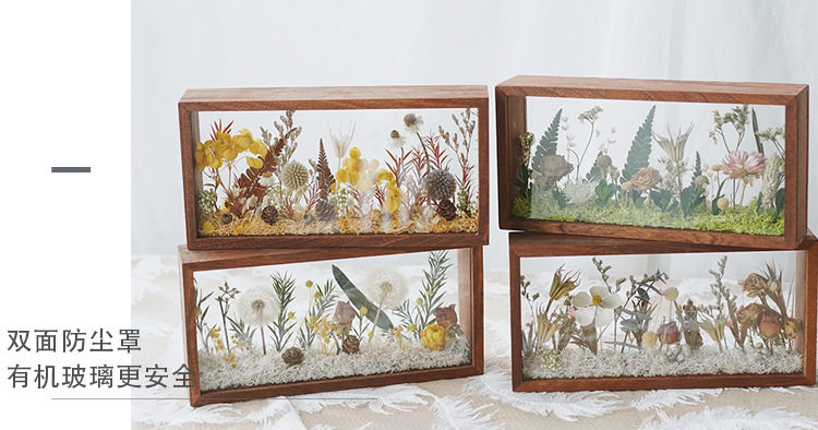 Mother's Day Teacher's Day gift diy eternal flower wooden photo frame dried flower double-sided glass hollow three-dimensional photo frame