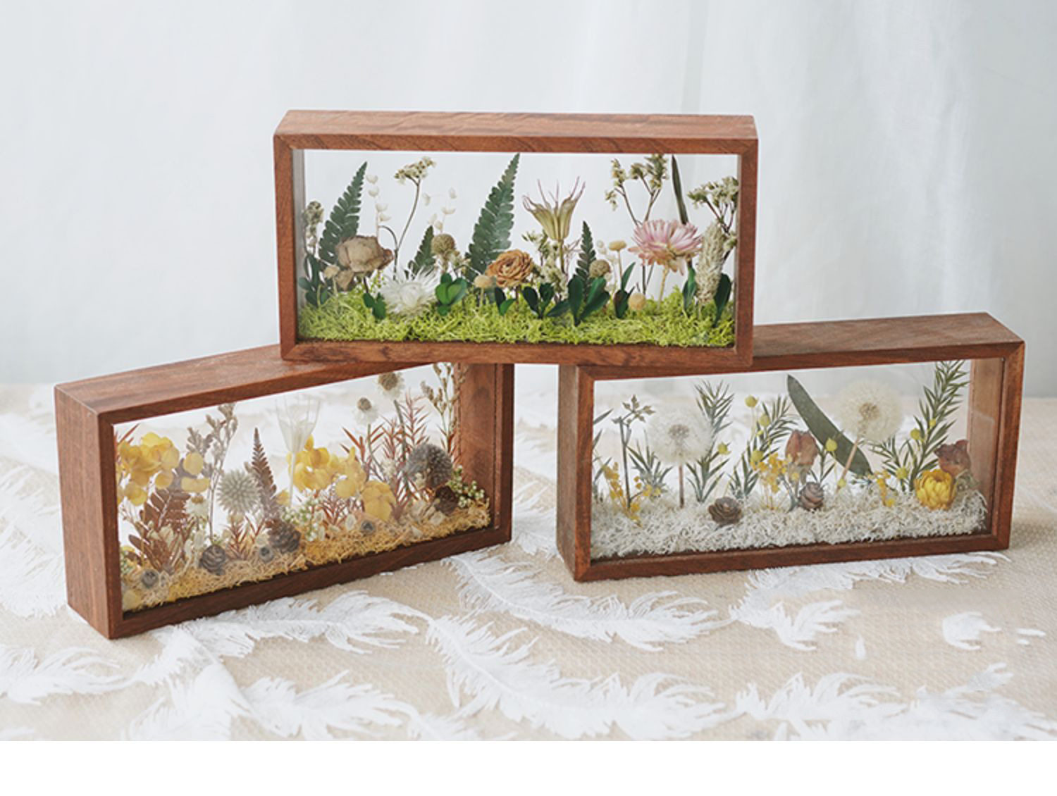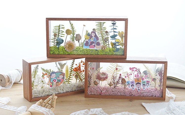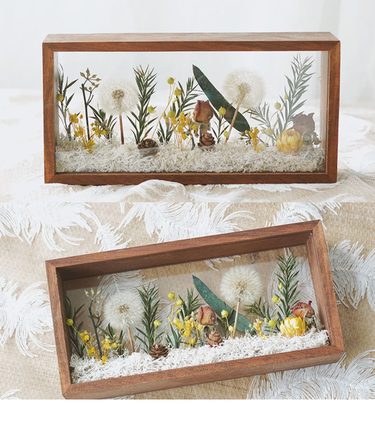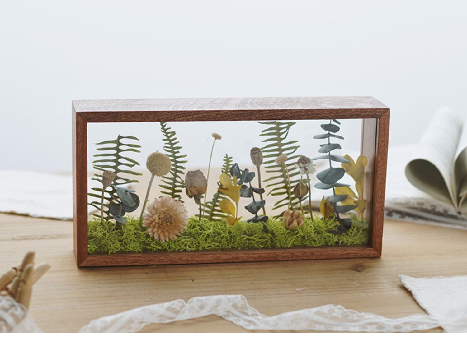 Mother's Day Teacher's Day gift diy eternal flower wooden photo frame dried flower double-sided glass hollow three-dimensional photo frame