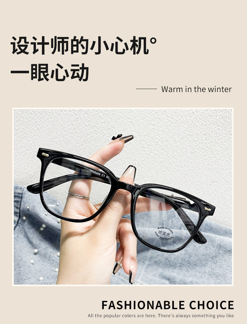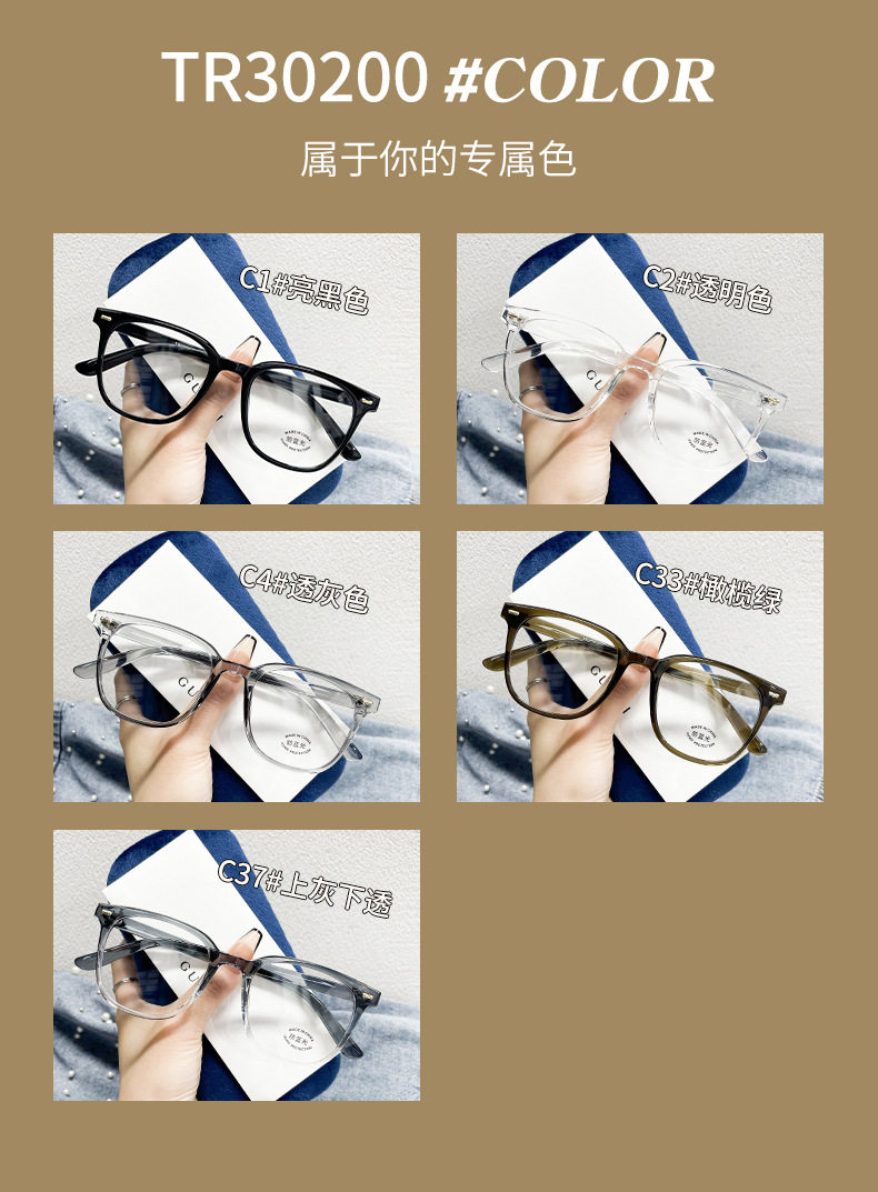 30200 New Retro Classic Small Square Frame Tr Trendy Frame for Men and Women with Myopia Anti-Blue Light Flat Glasses