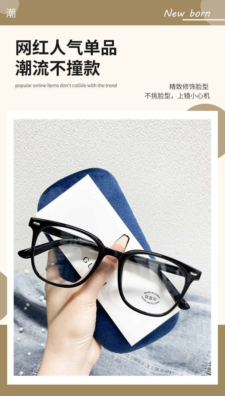 30200 New Retro Classic Small Square Frame Tr Trendy Frame for Men and Women with Myopia Anti-Blue Light Flat Glasses