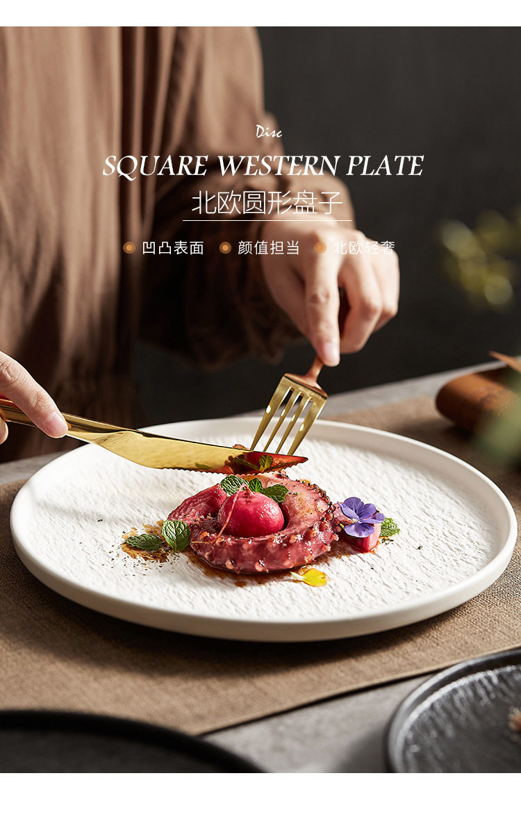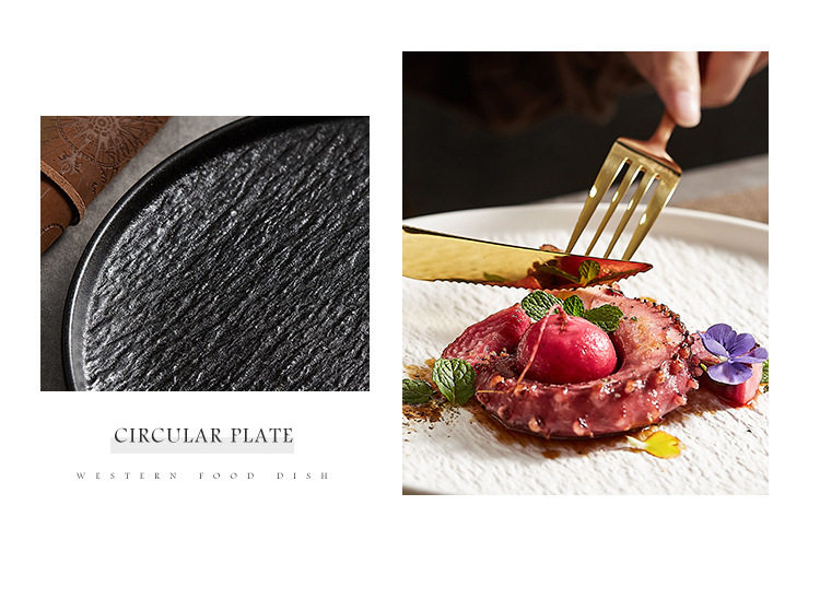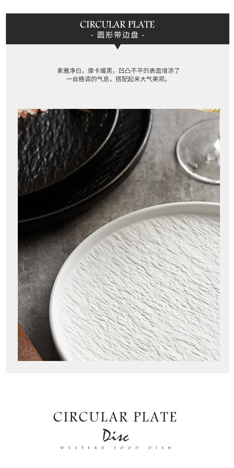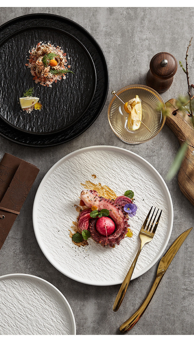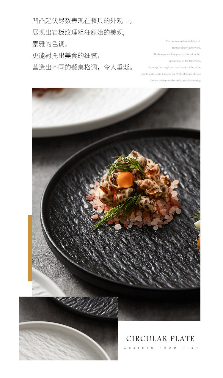 Creative Rock Pattern Ceramic Japanese Style Dish White Home Salad Light Luxury Western Food Dish with Side Commercial Steak Plate