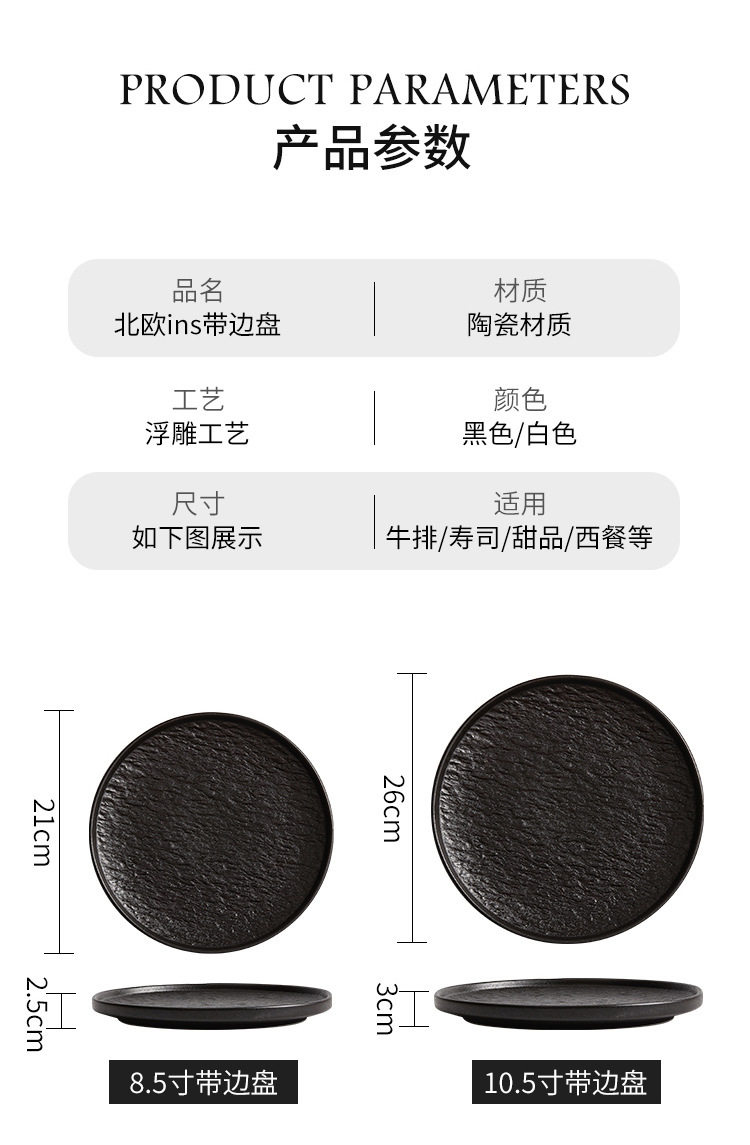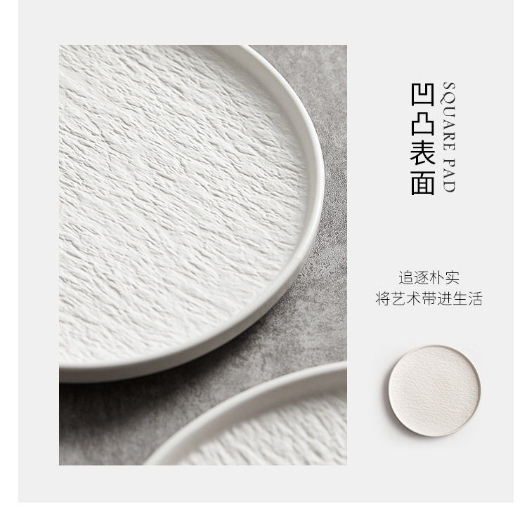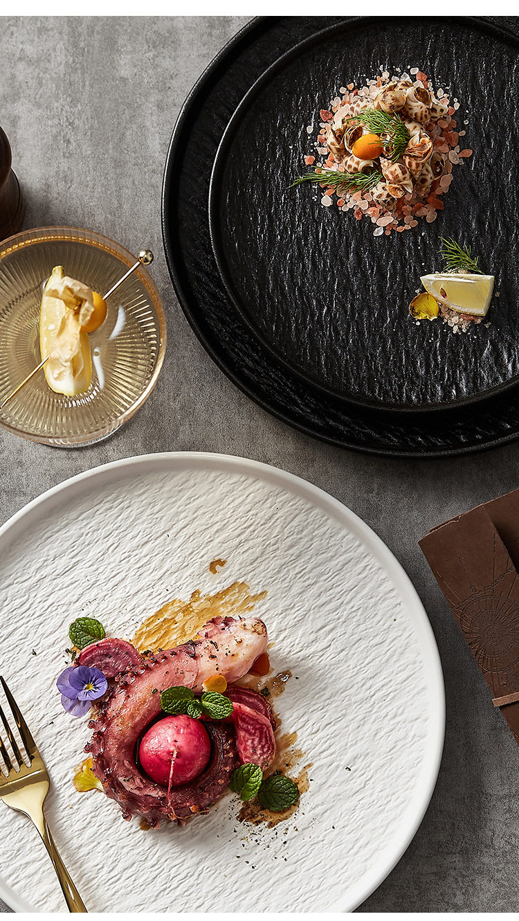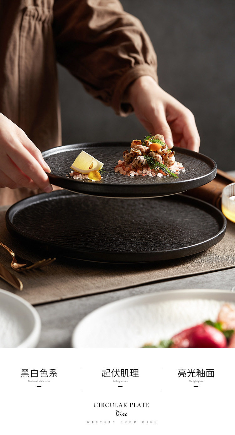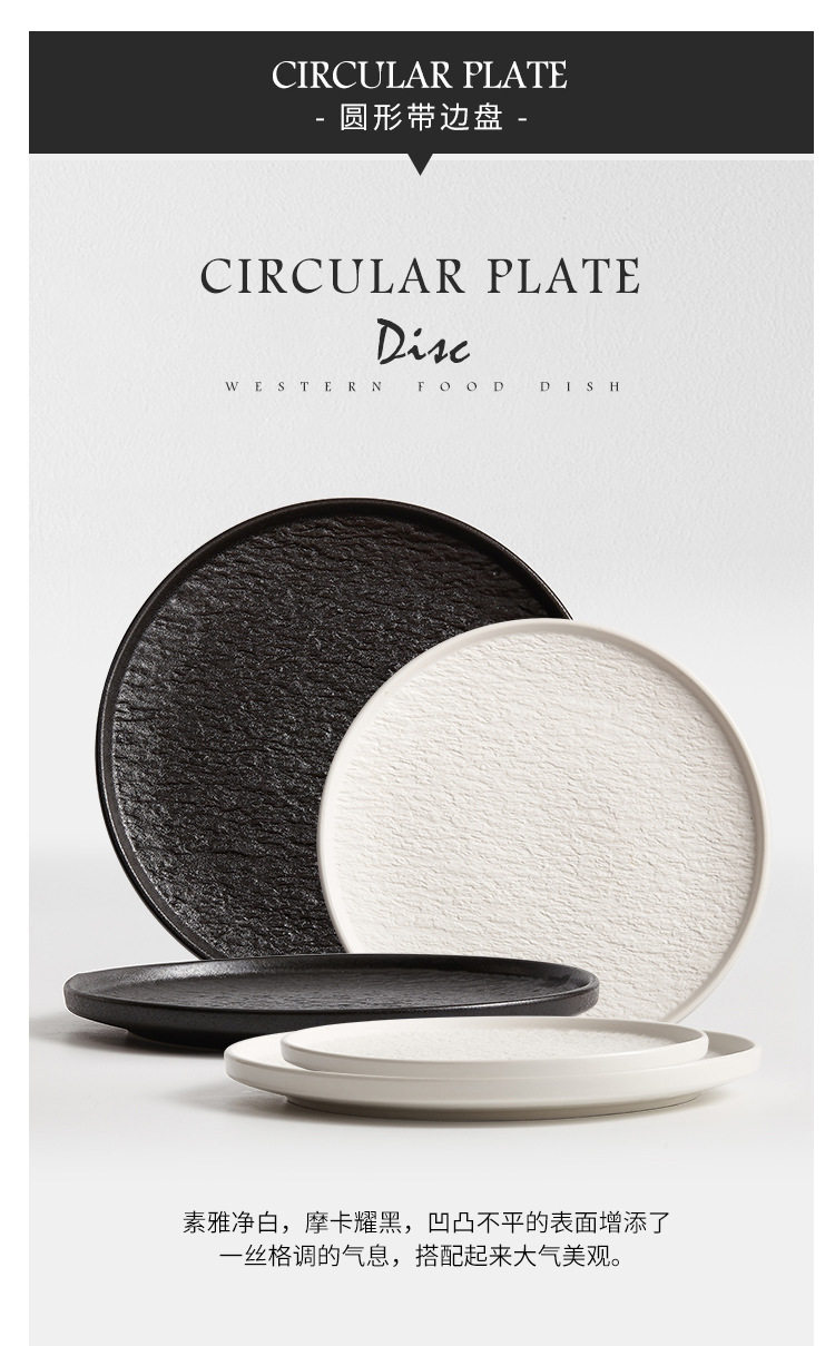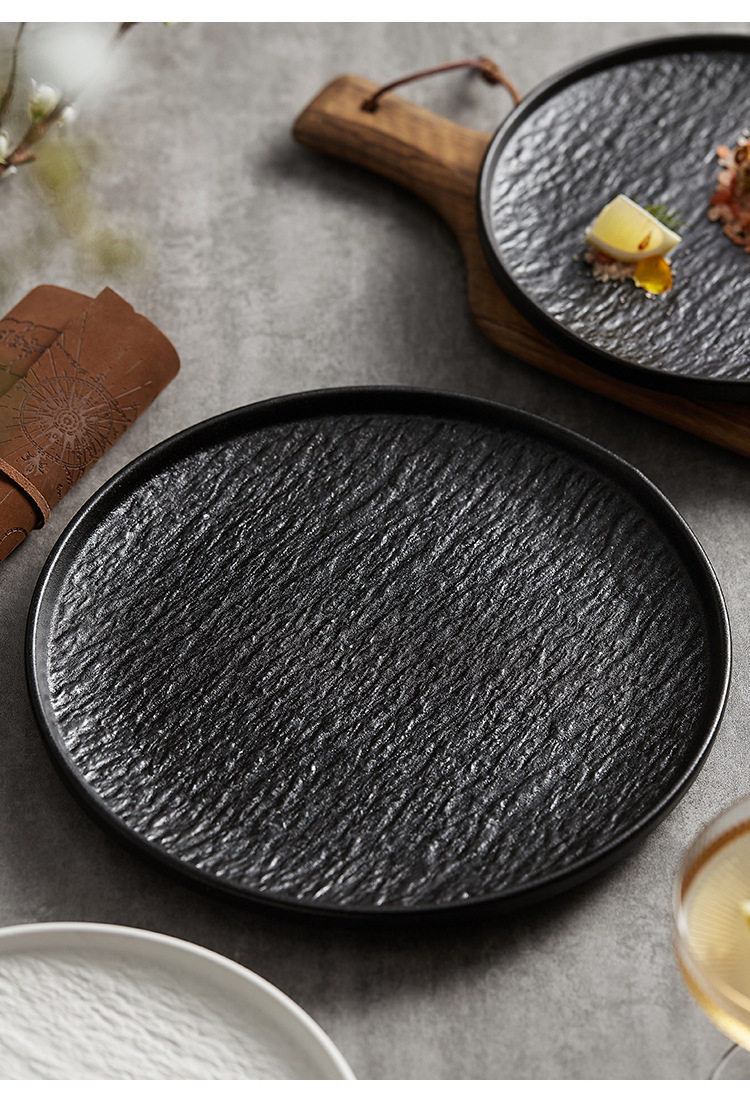 Creative Rock Pattern Ceramic Japanese Style Dish White Home Salad Light Luxury Western Food Dish with Side Commercial Steak Plate