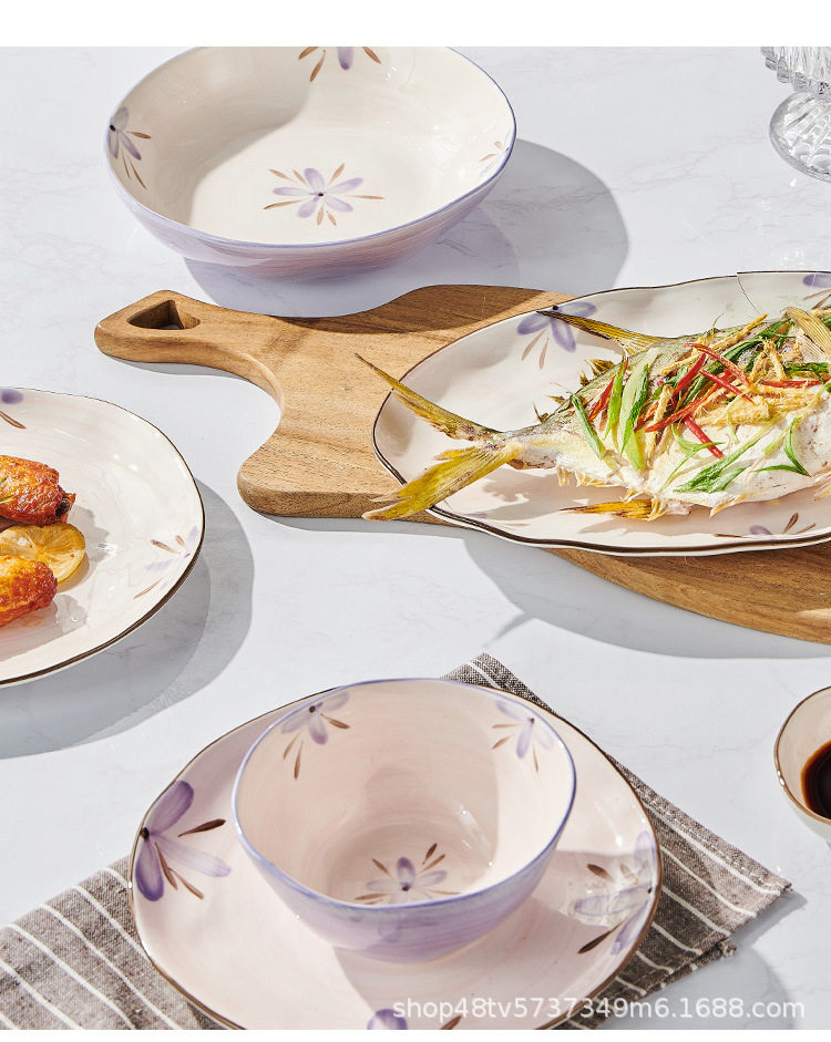 Hand-painted underglaze color purple wind chime series ceramic tableware bowls and dishes purple tableware can be combined (a generation of hair)