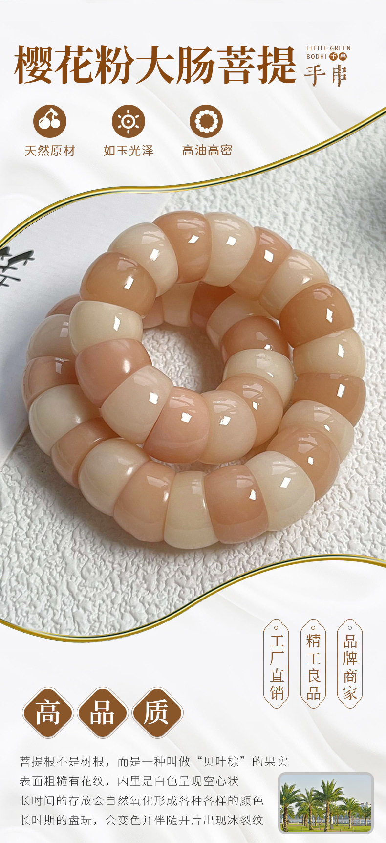 Natural Bodhi Root Bracelet Cherry Blossom Pig Colorful Tray for Men and Women Play Wrap Finger Soft Buddha Bead Rosary Bracelet Play Wholesale