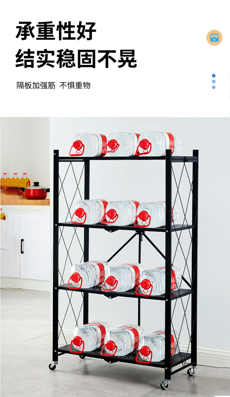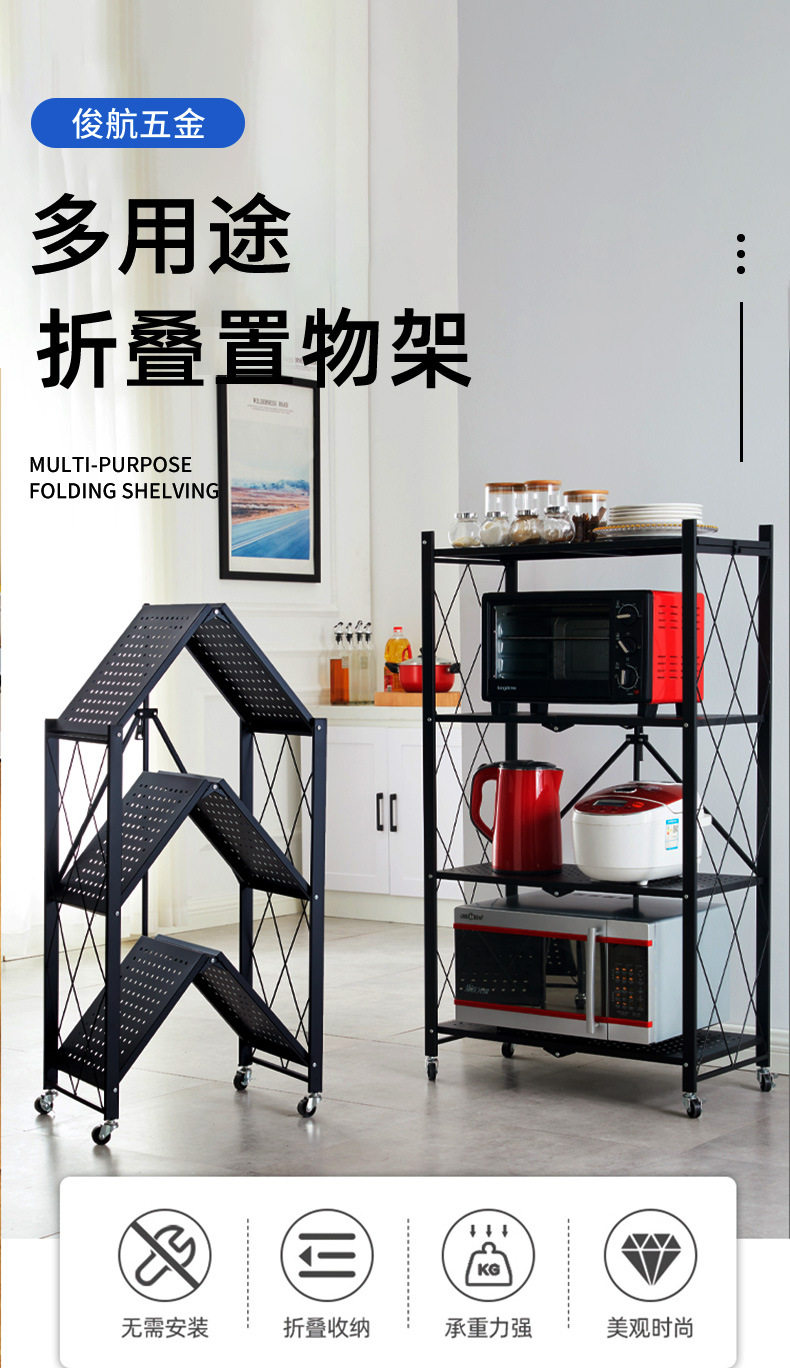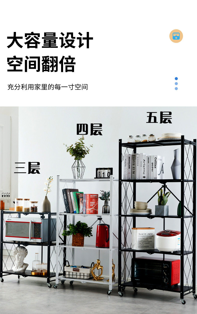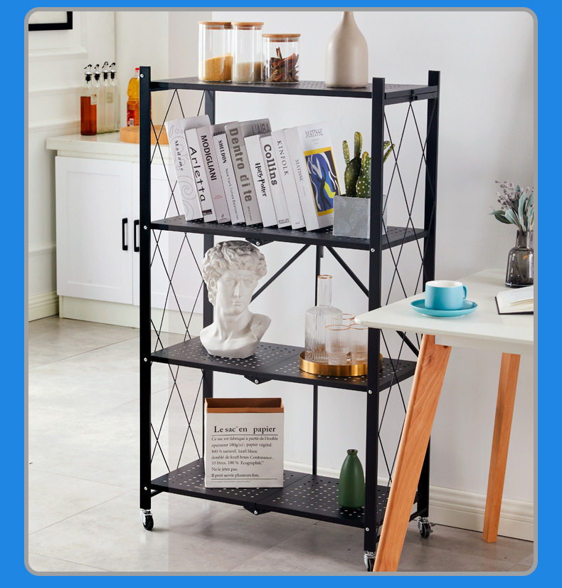 Home Storage Rack Installation-Free Multi-Layer Kitchen Large Folding Floor-Standing Movable Storage Rack with Wheels for Living Room