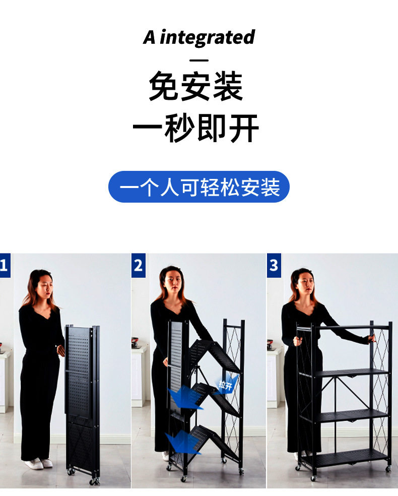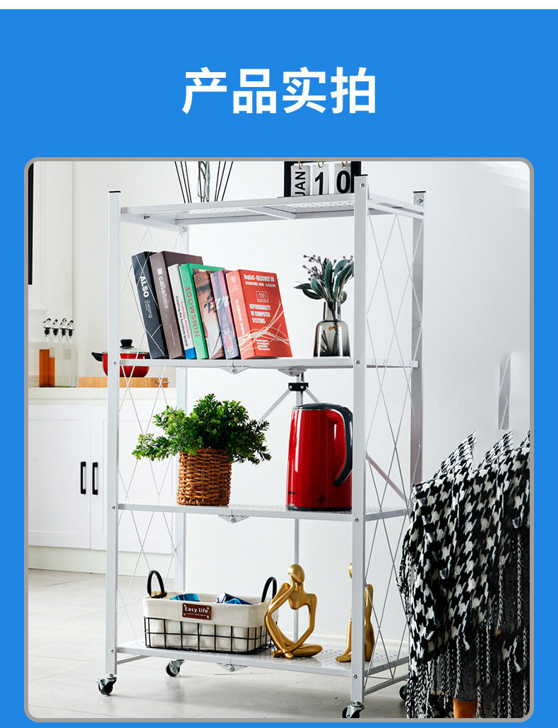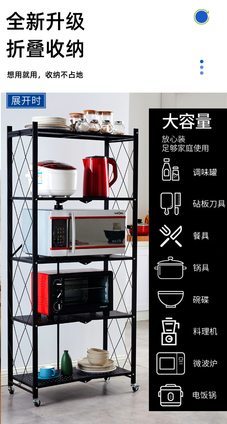 Home Storage Rack Installation-Free Multi-Layer Kitchen Large Folding Floor-Standing Movable Storage Rack with Wheels for Living Room