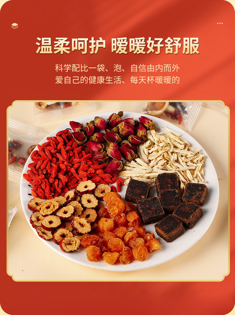 Brown sugar ginger jujube tea brown sugar longan red dates medlar group scented tea female qi and blood aunt brown sugar ginger tea wholesale