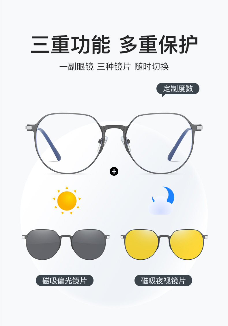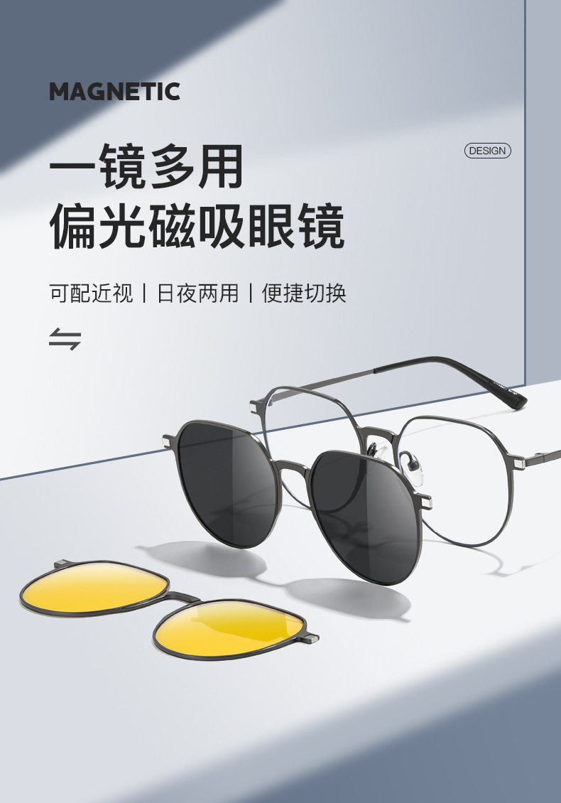 Gauteng Polarized Sunglasses Anti-ultraviolet Magnetic Glasses Can be Configurable-degree Sunglasses Nearsighted Glasses Frame 7023
