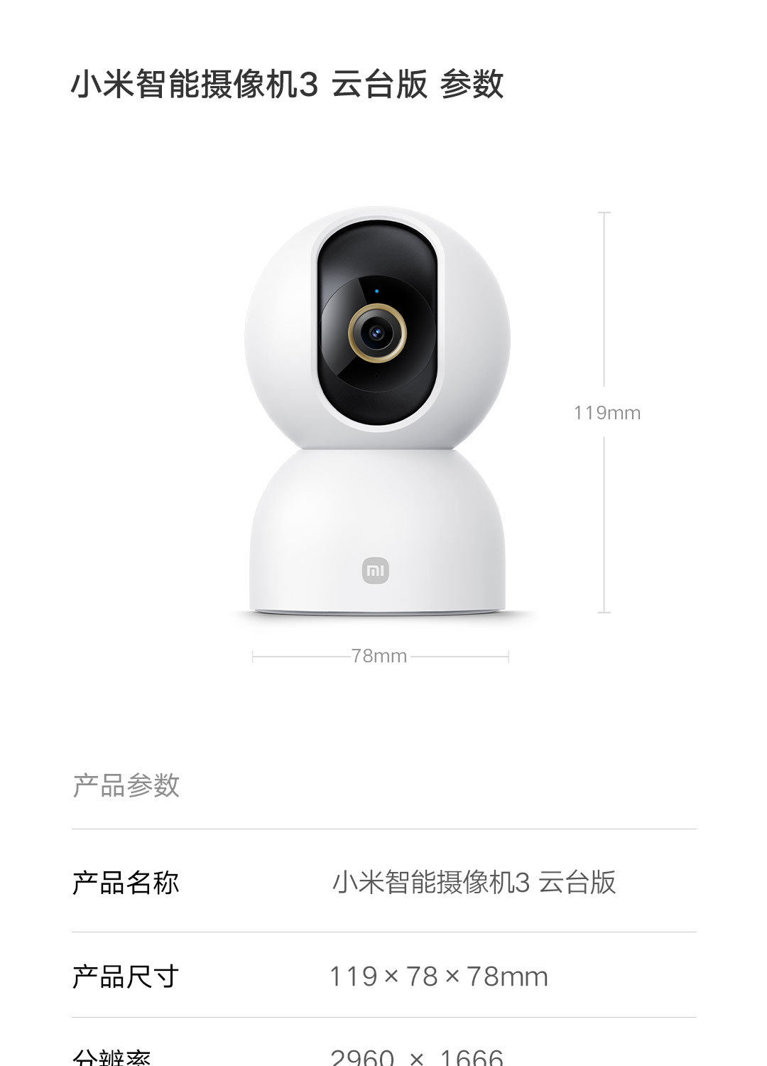 Model Xiaomi smart camera 3 PTZ version
