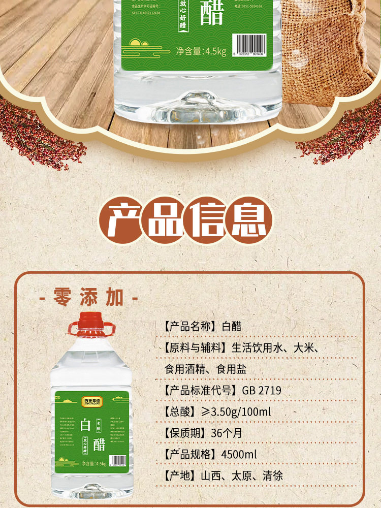Shanxi Edible White Vinegar 4.5kg Large Barrels Packaged Garlic Companion for Descaling and Foot Soaking, Whole Box Wholesale White Vinegar