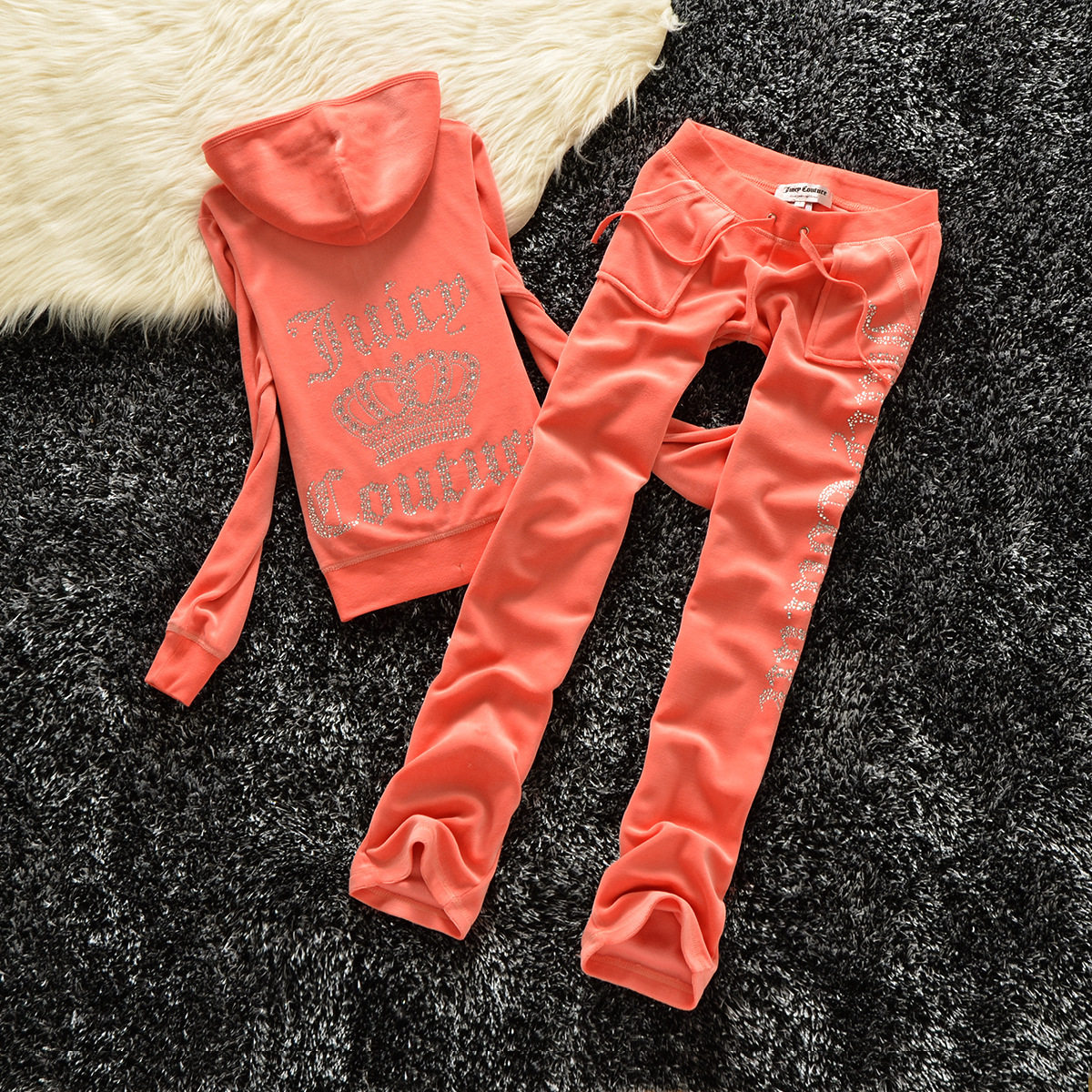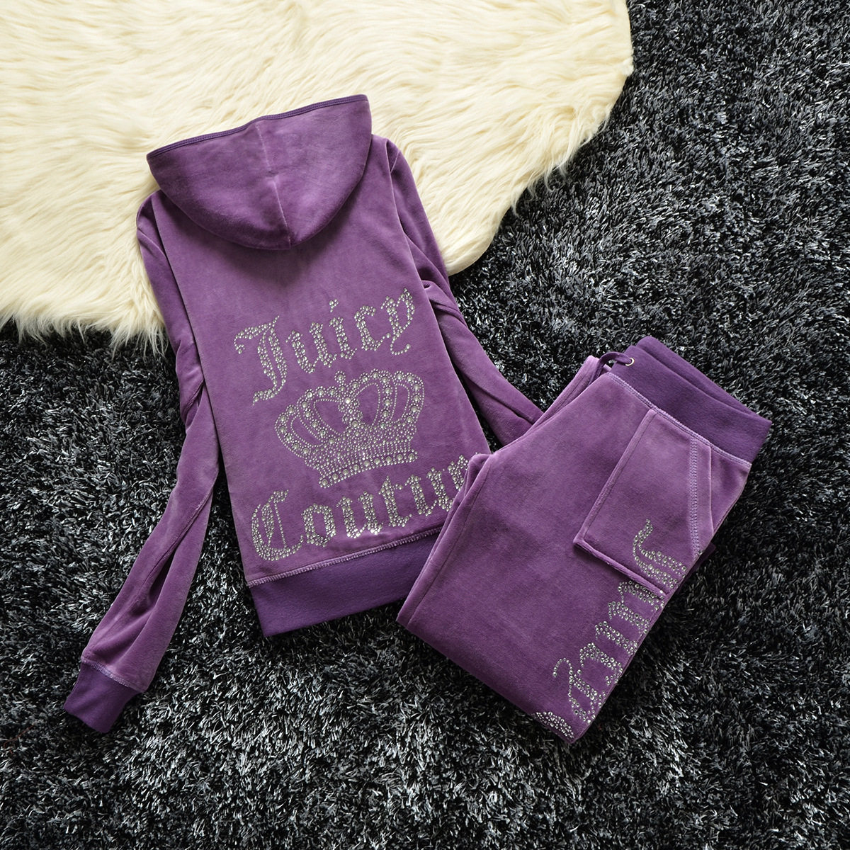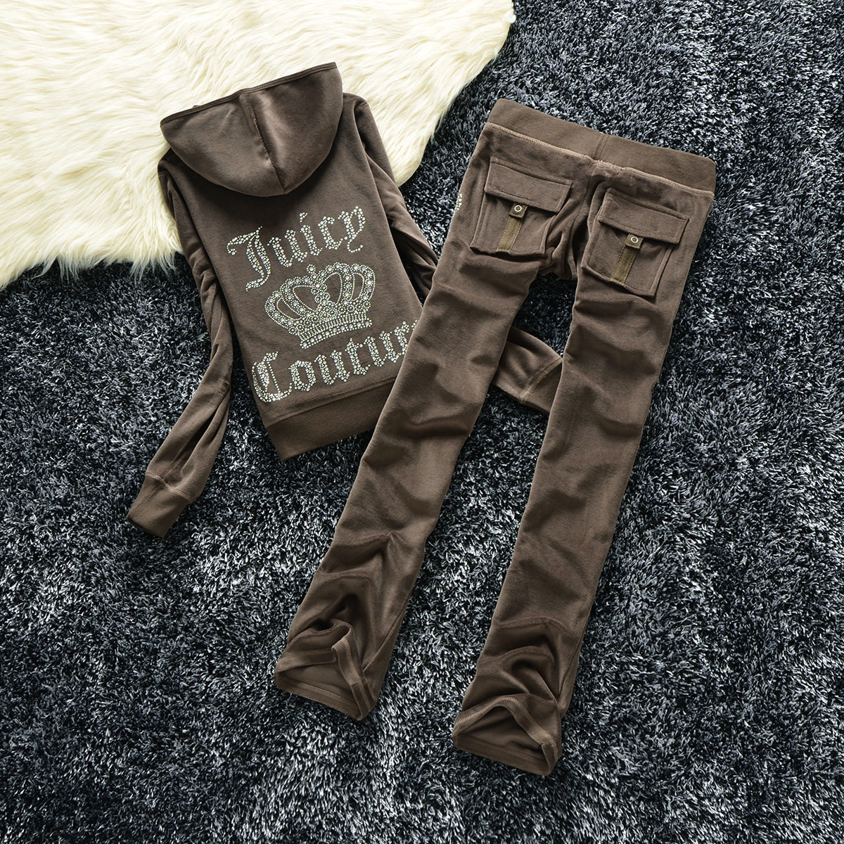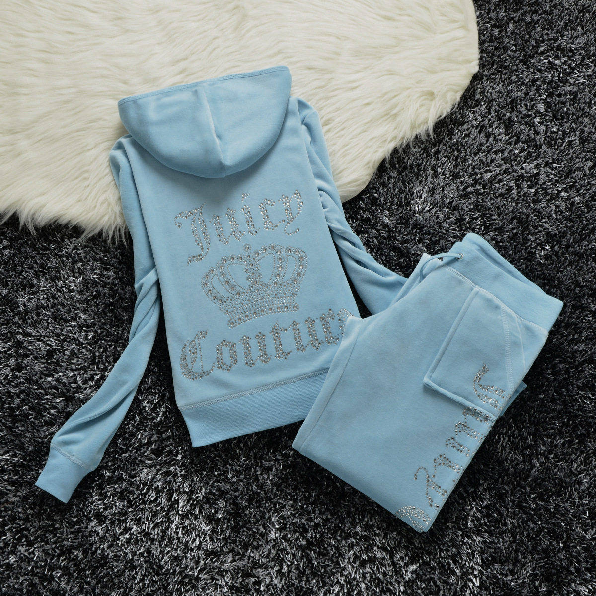 Autumn and winter 2023 European and American gold velvet crown rhinestone letter leisure sports suit women's rhinestone two-piece set